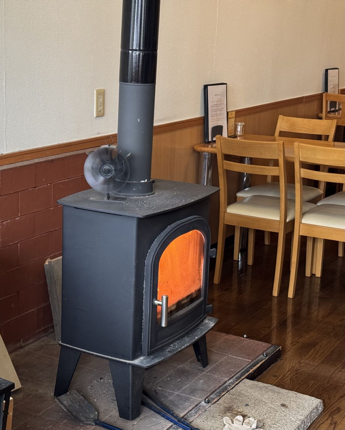 暖炉のある店内で、ユーミンを聴きながら