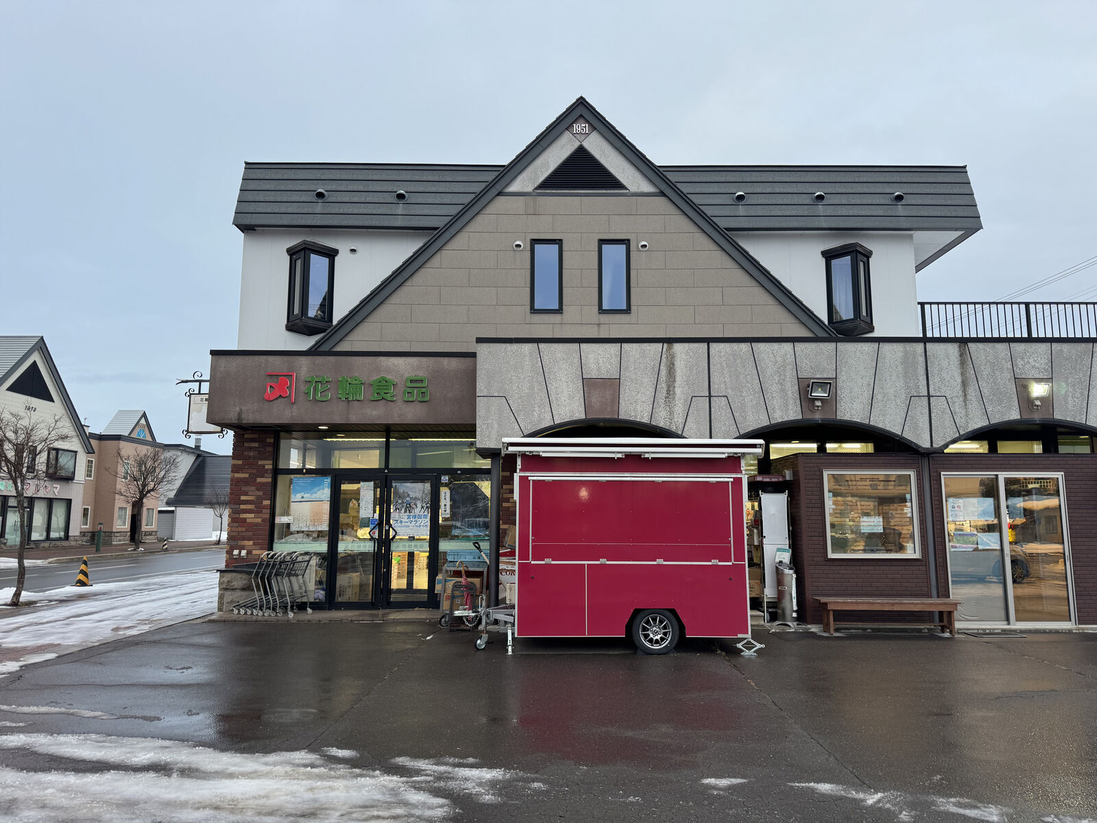 赤い屋根の小屋とともに。