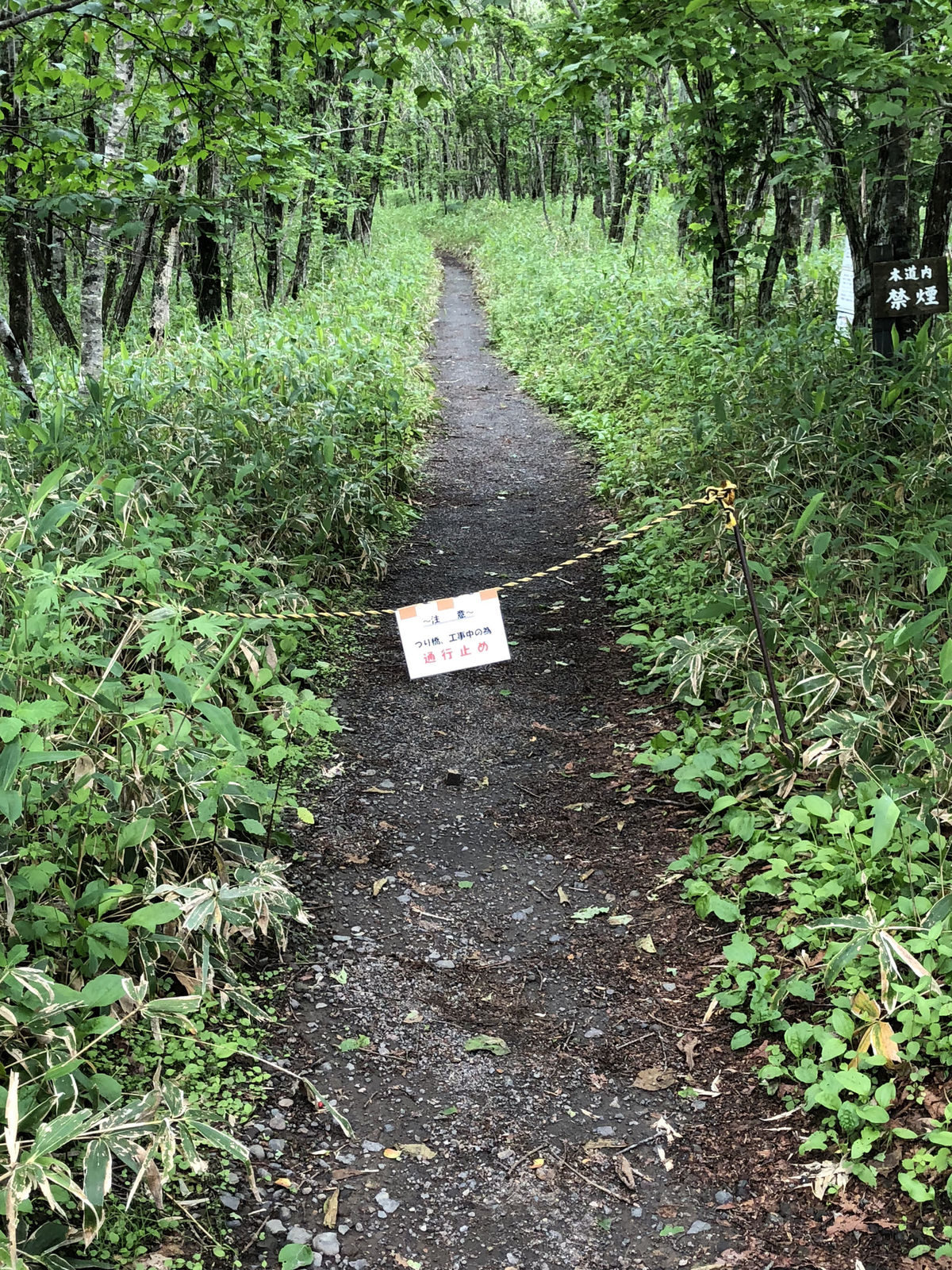 湿原展望遊歩道を散策しようとすると、何と通行止め。