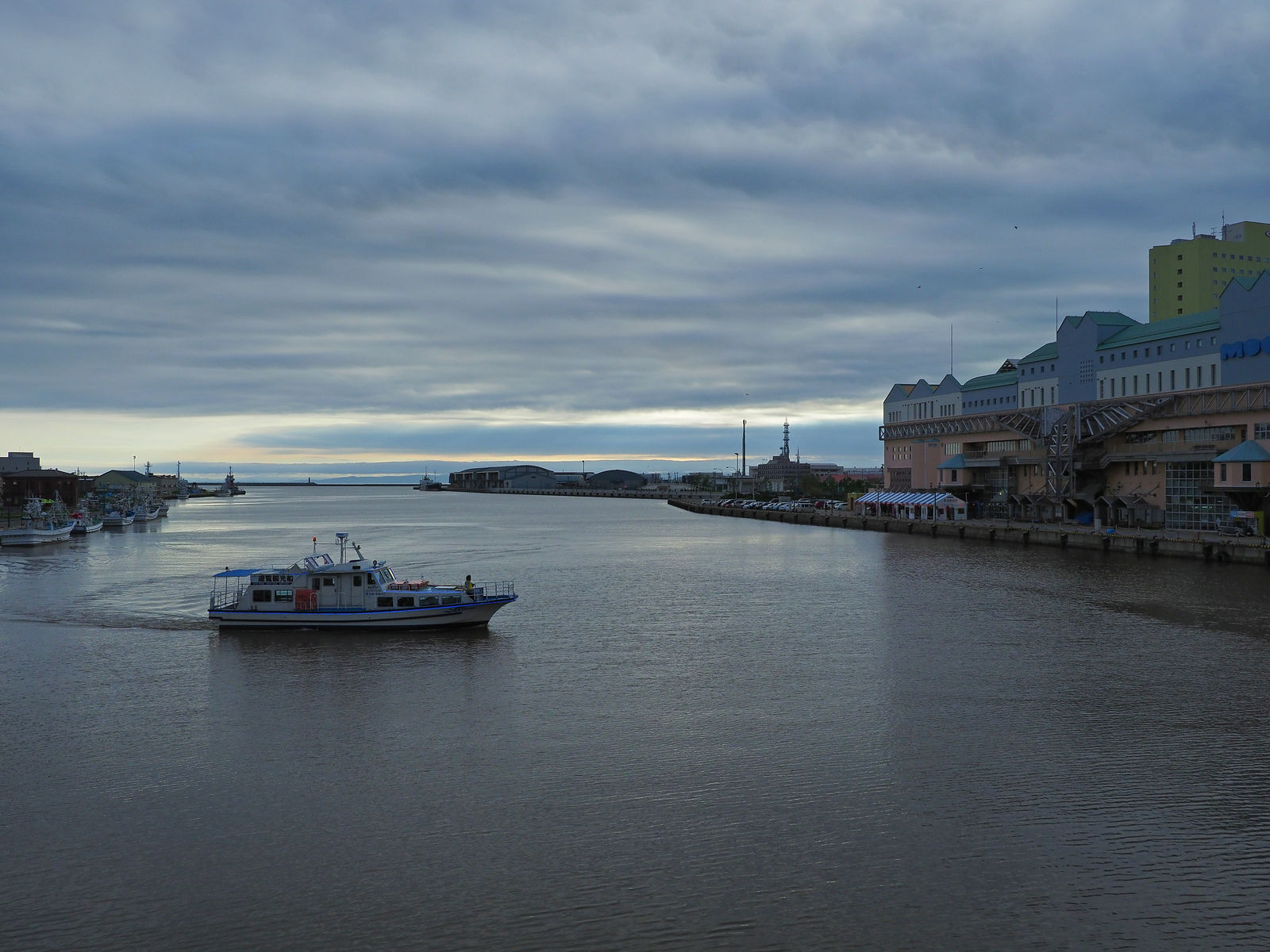 18時過ぎに洗濯物の乾燥が終わったので、釧路川河口が望める宿泊先より夕焼け待ち。