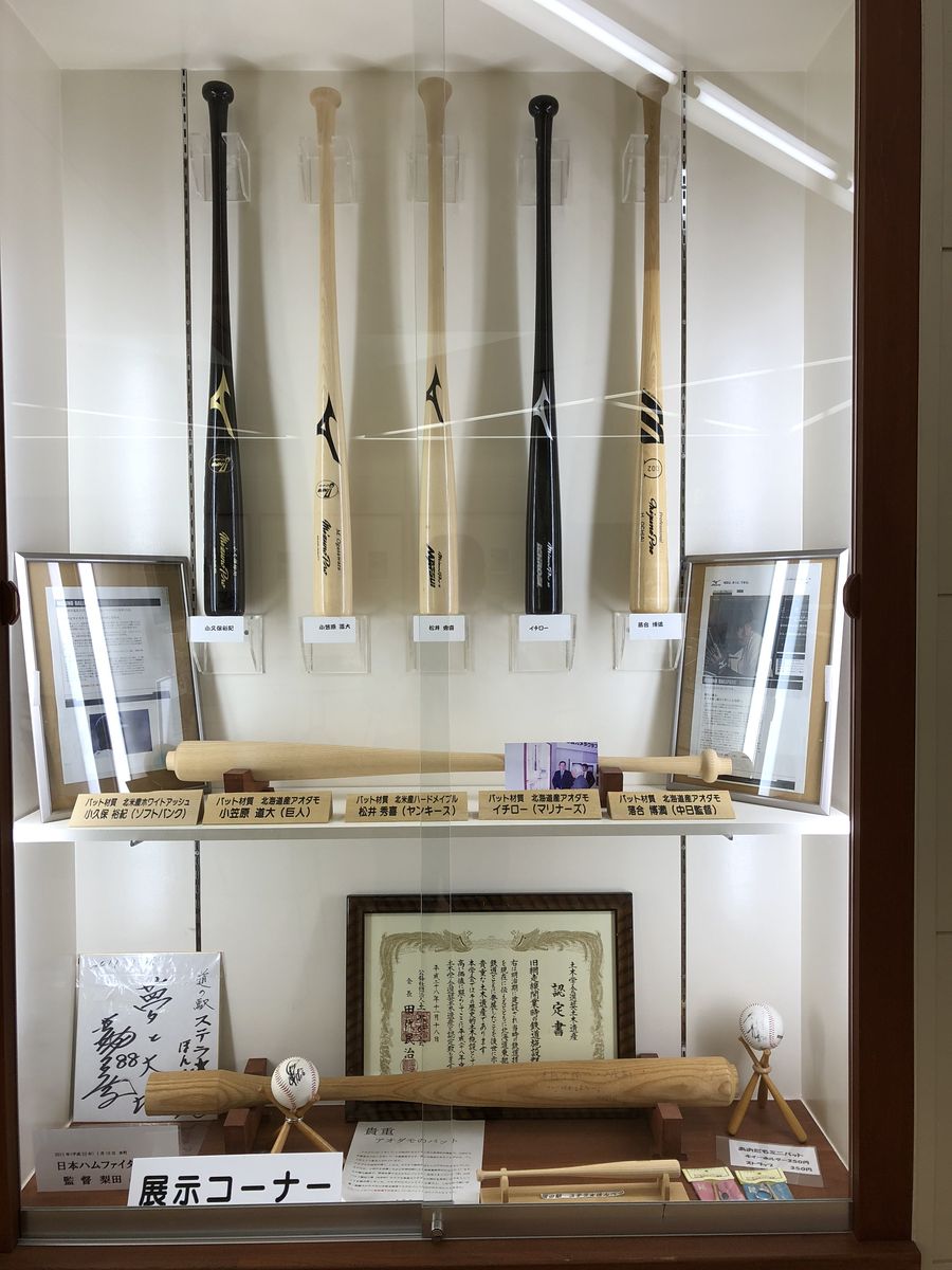 本別はアオダモの産地として有名なため、イチロー選手や松井選手などのアオダモ製バットが道の駅に展示されていますよ。