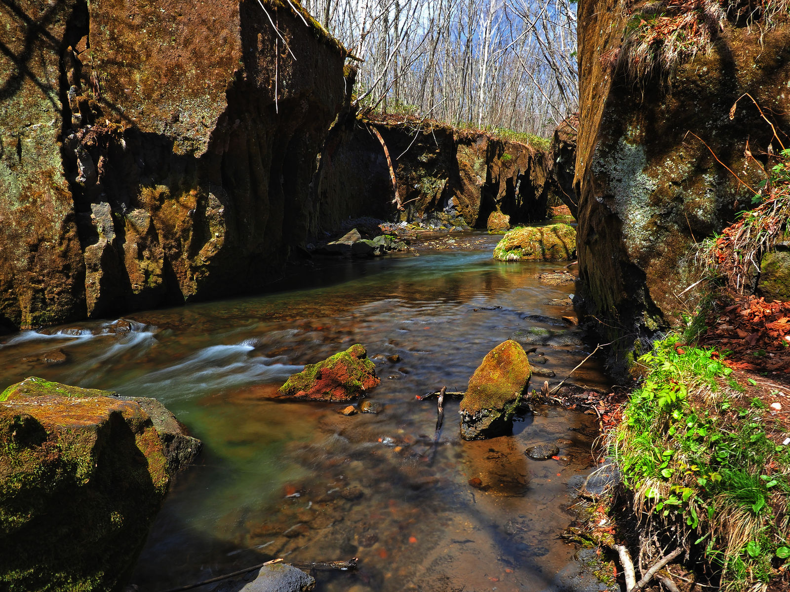 橋の上から見下ろすと、まだ新緑の季節にもなっていないので、スカスカの感じ。