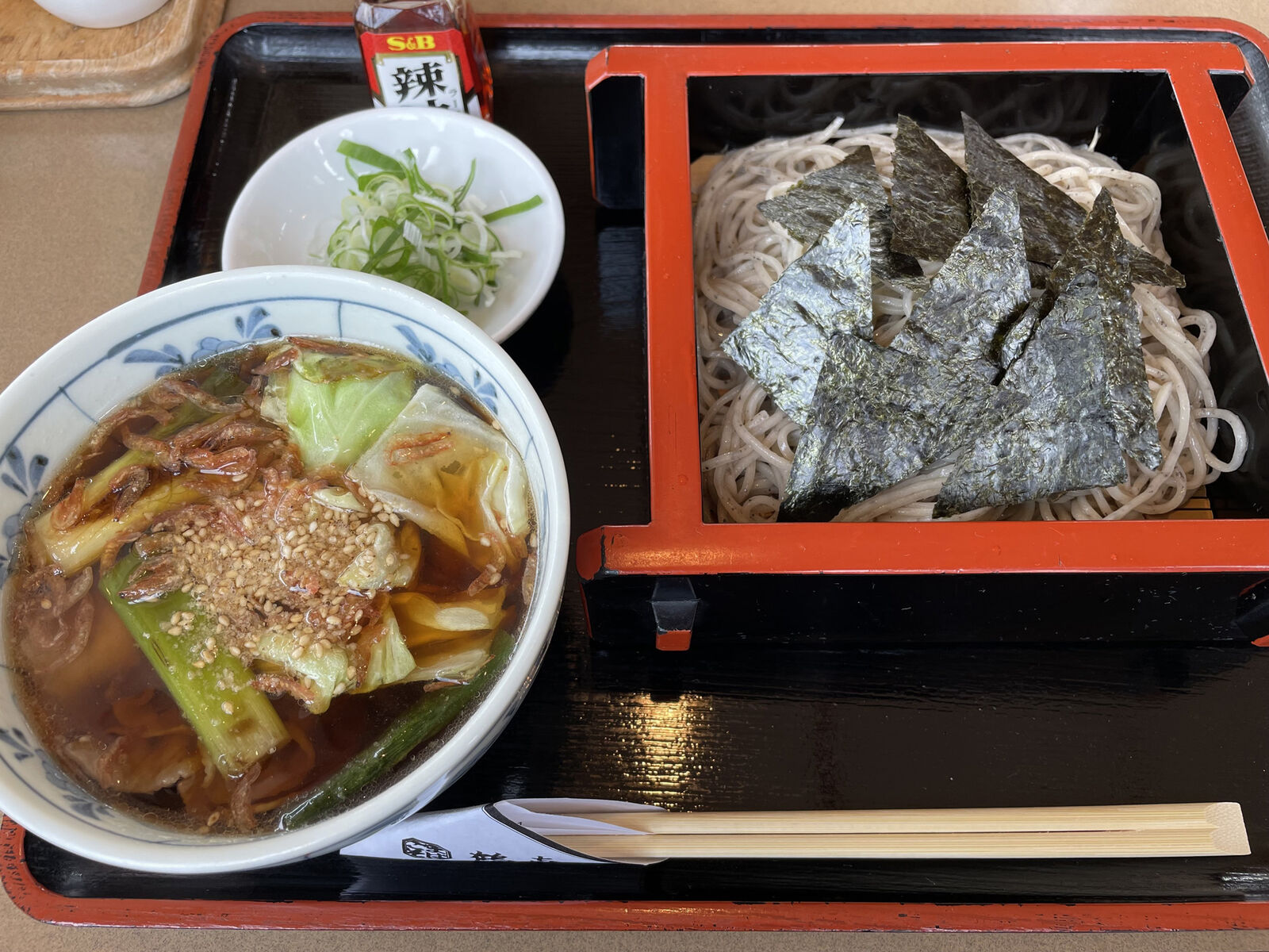 空港に向かう前に、ごまそば鶴㐂美瑛店さんで、豚とキャベツのつけせいろ