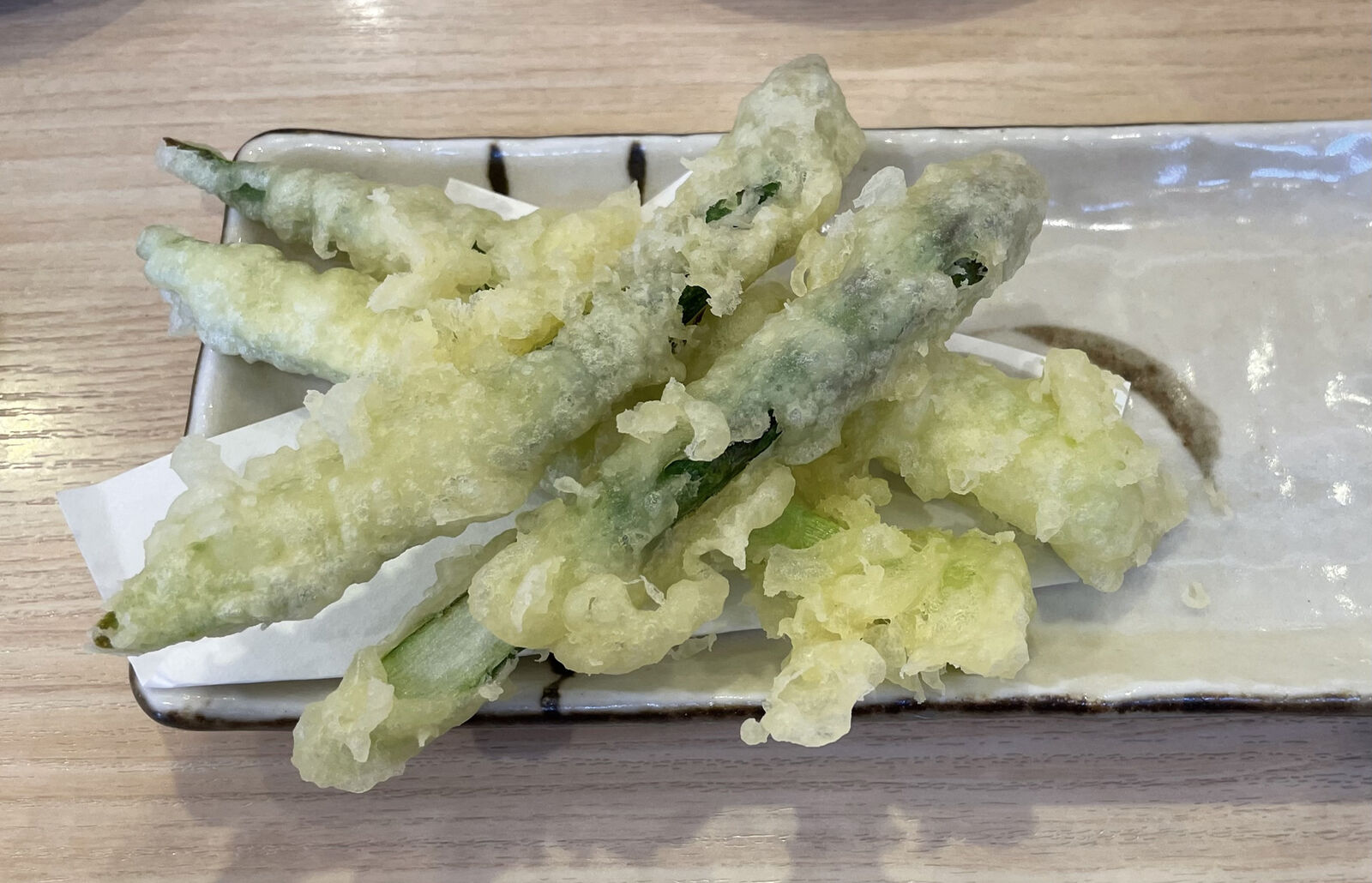 大好物のホタテ・イクラに加えて、旬のアスパラ天ぷらも頂けてメッチャ幸せ。