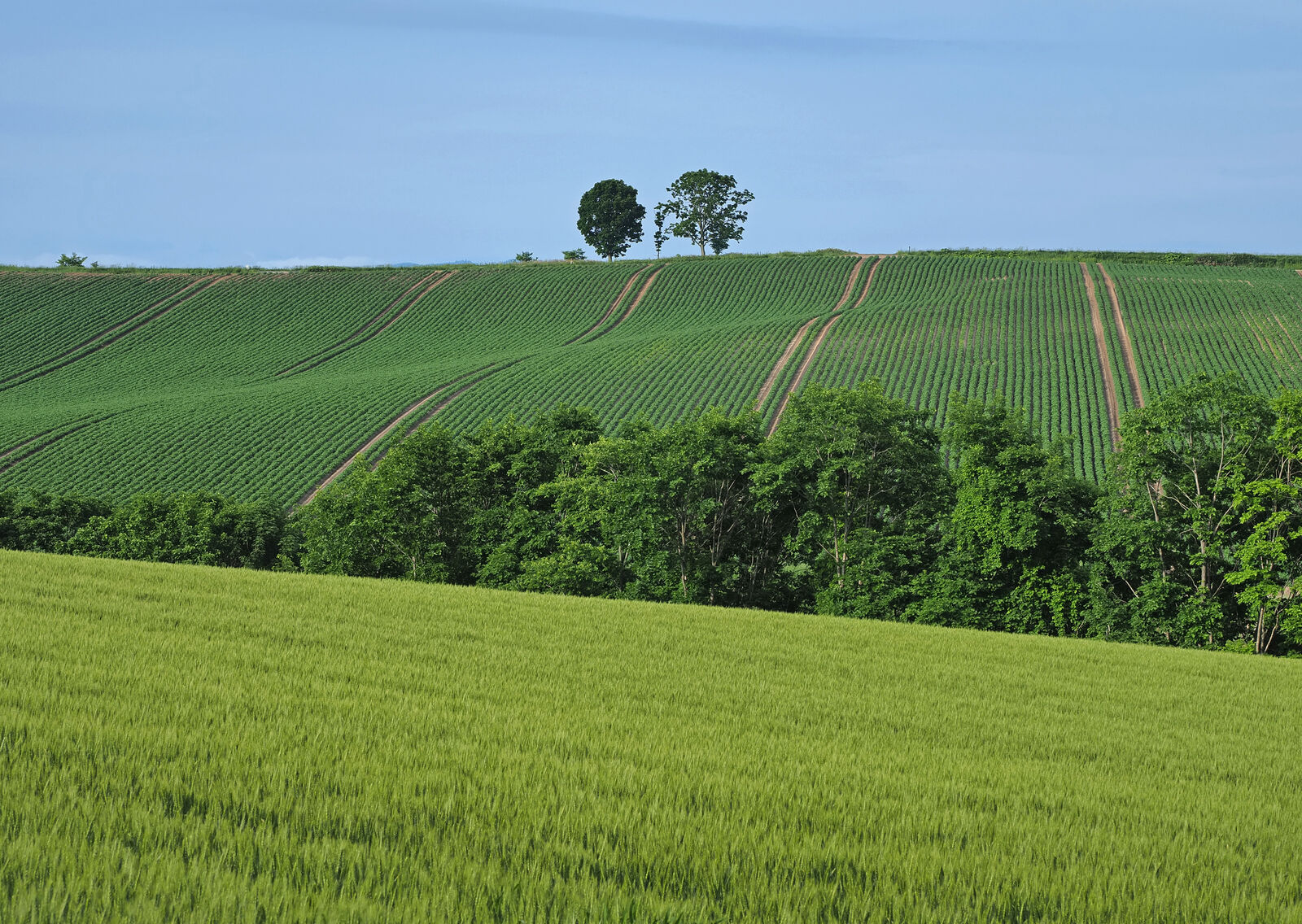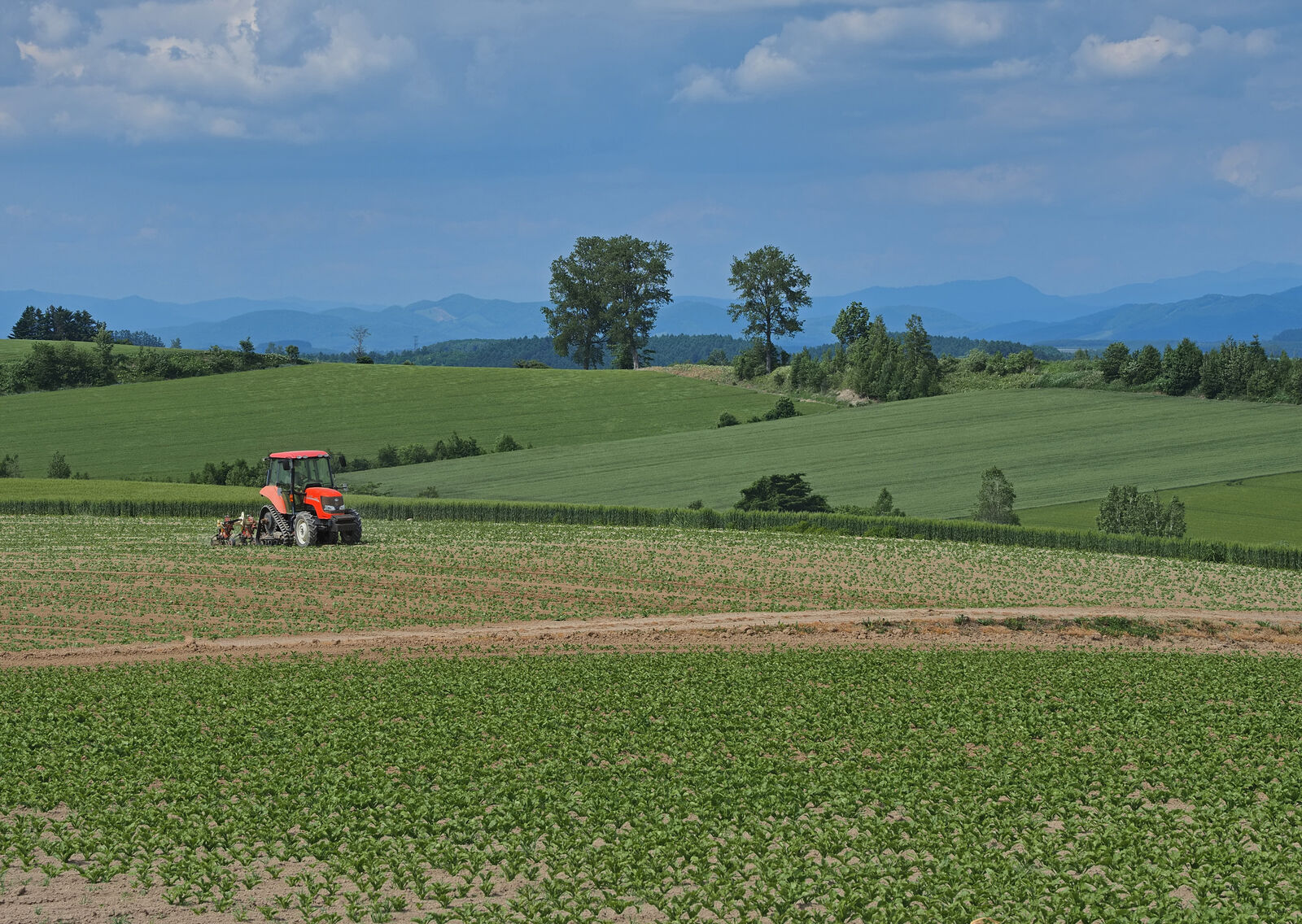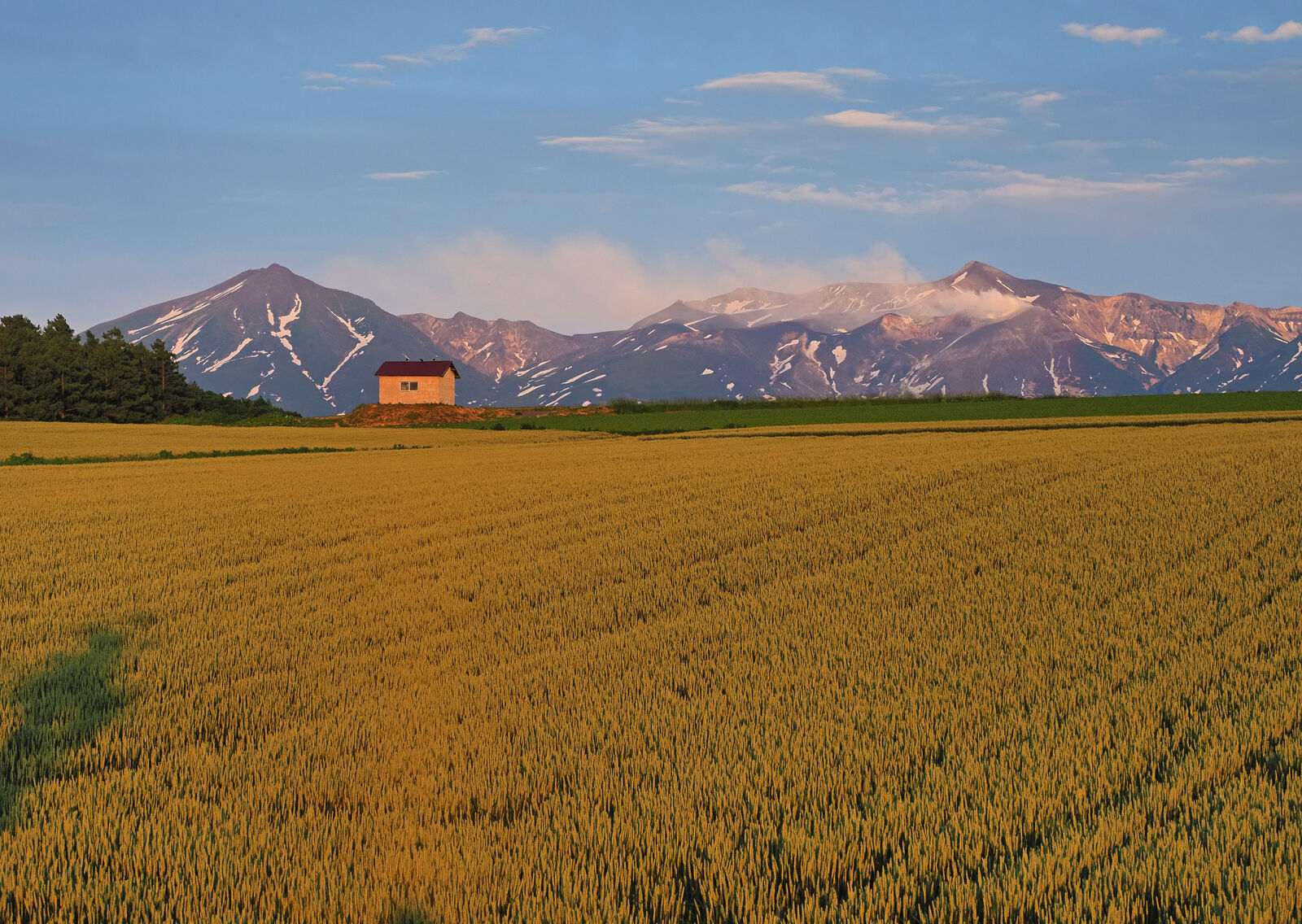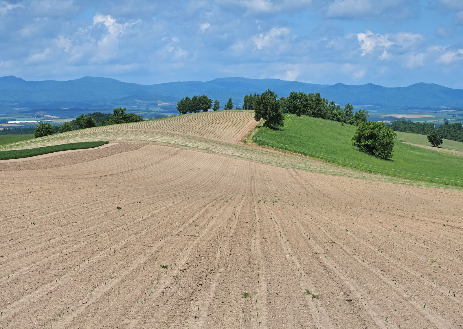 正面は、堆肥が積まれていて絵になりませんが、十勝岳連峰側が「きたほなみ」、反対側が「ゆめちから」でした。