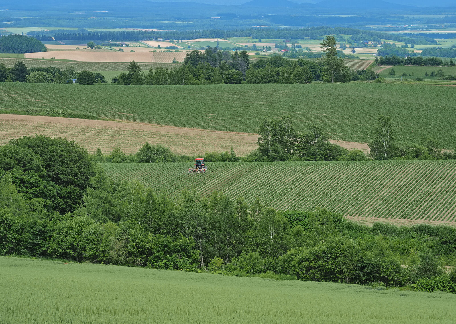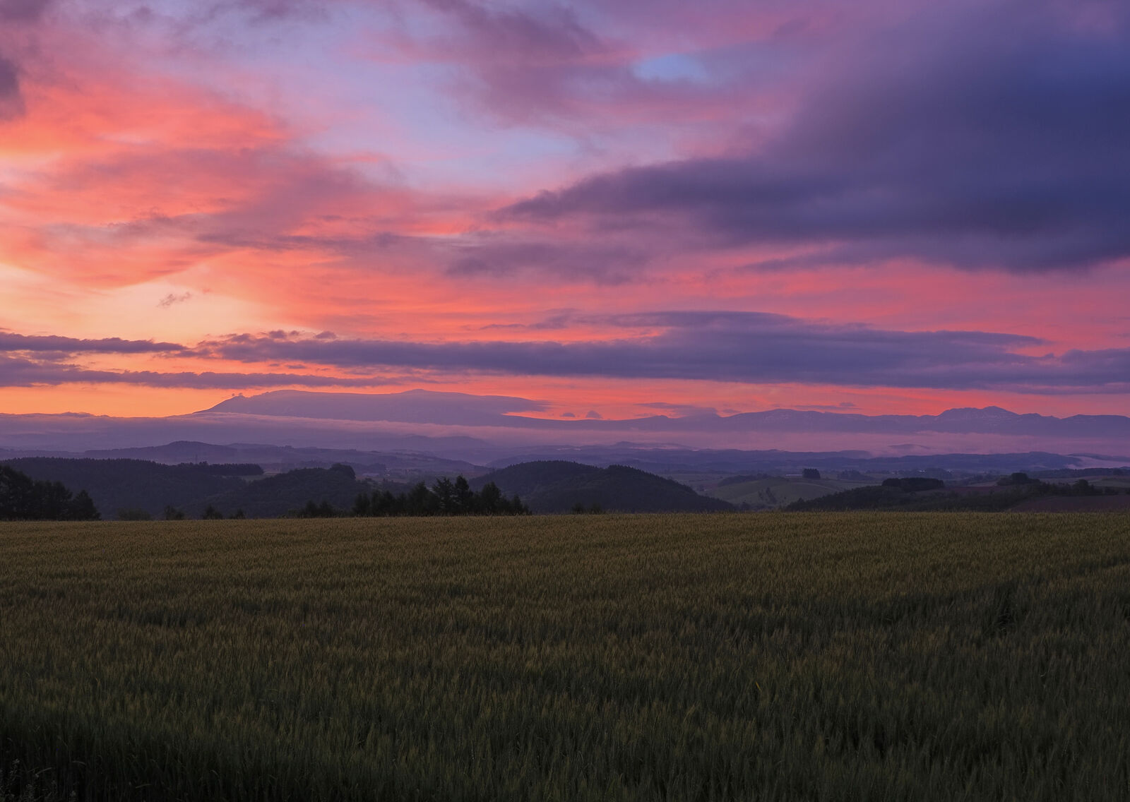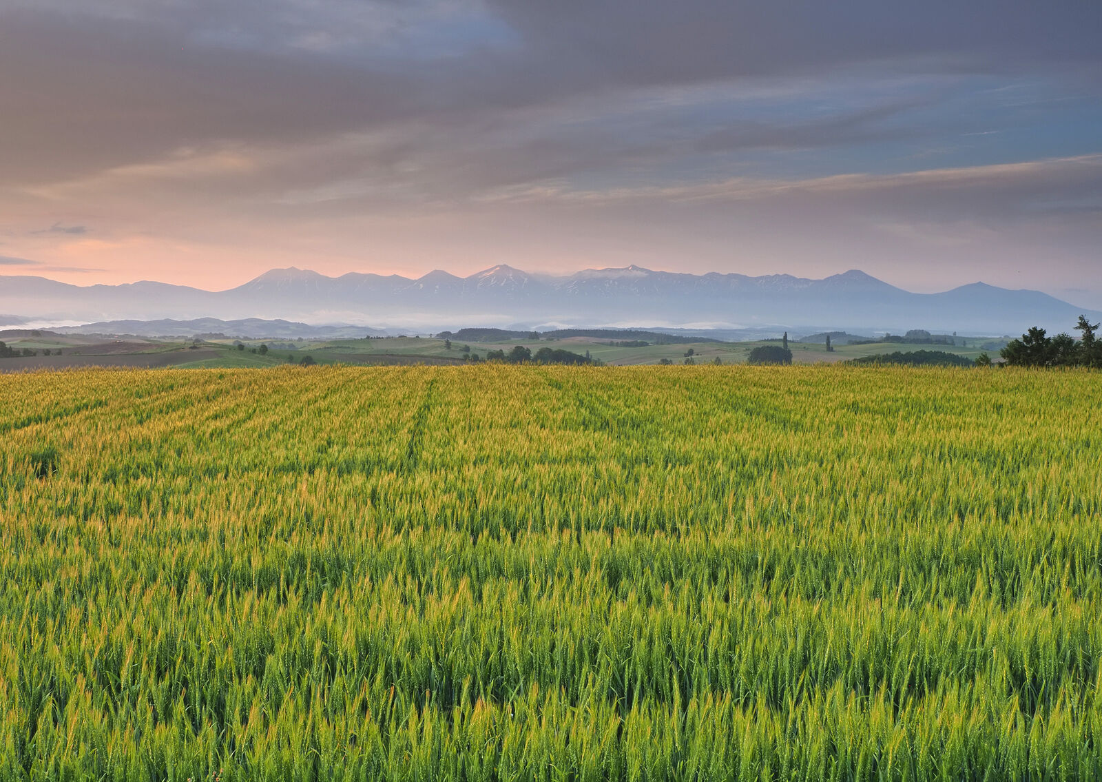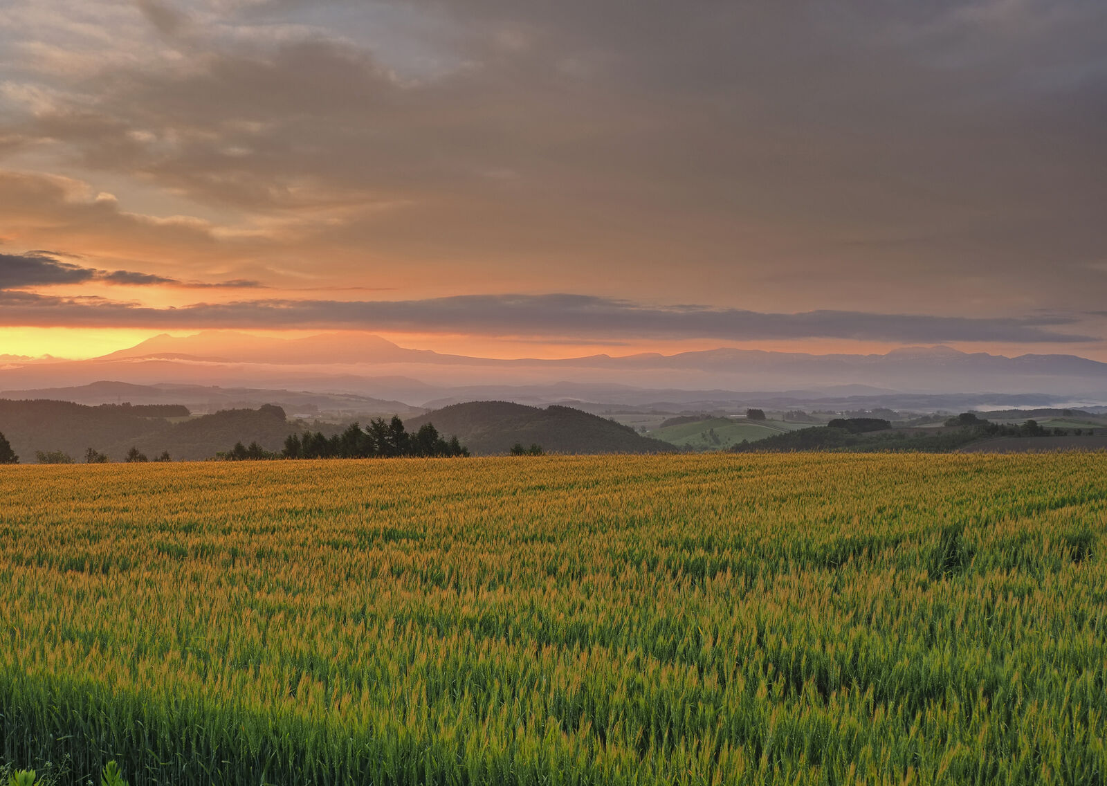 正面は、堆肥が積まれていて絵になりませんが、十勝岳連峰側が「きたほなみ」、反対側が「ゆめちから」でした。