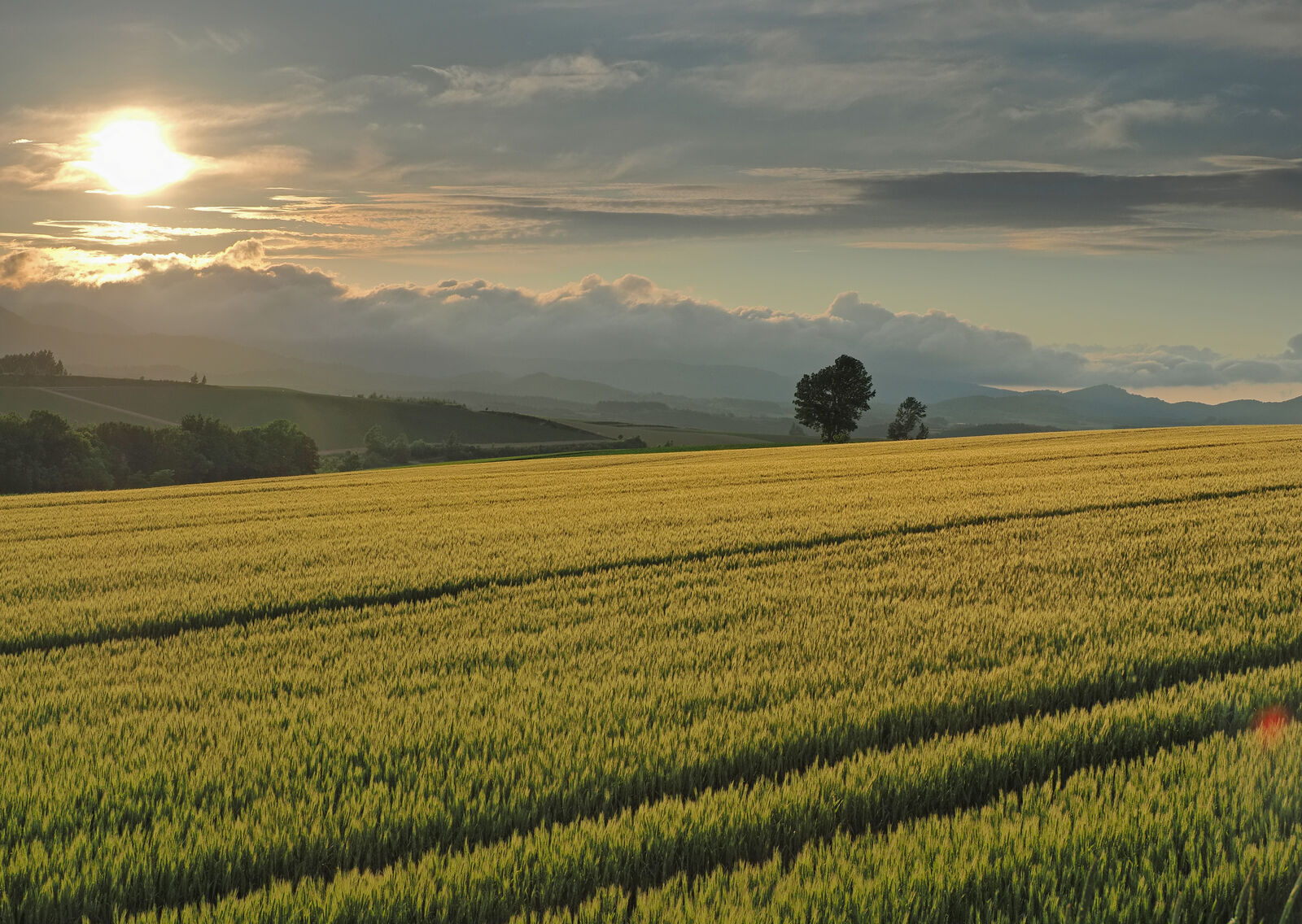 光が丘に届きはじめると、秋撒き小麦「ゆめちから」のヒゲが美しく輝きはじめました。