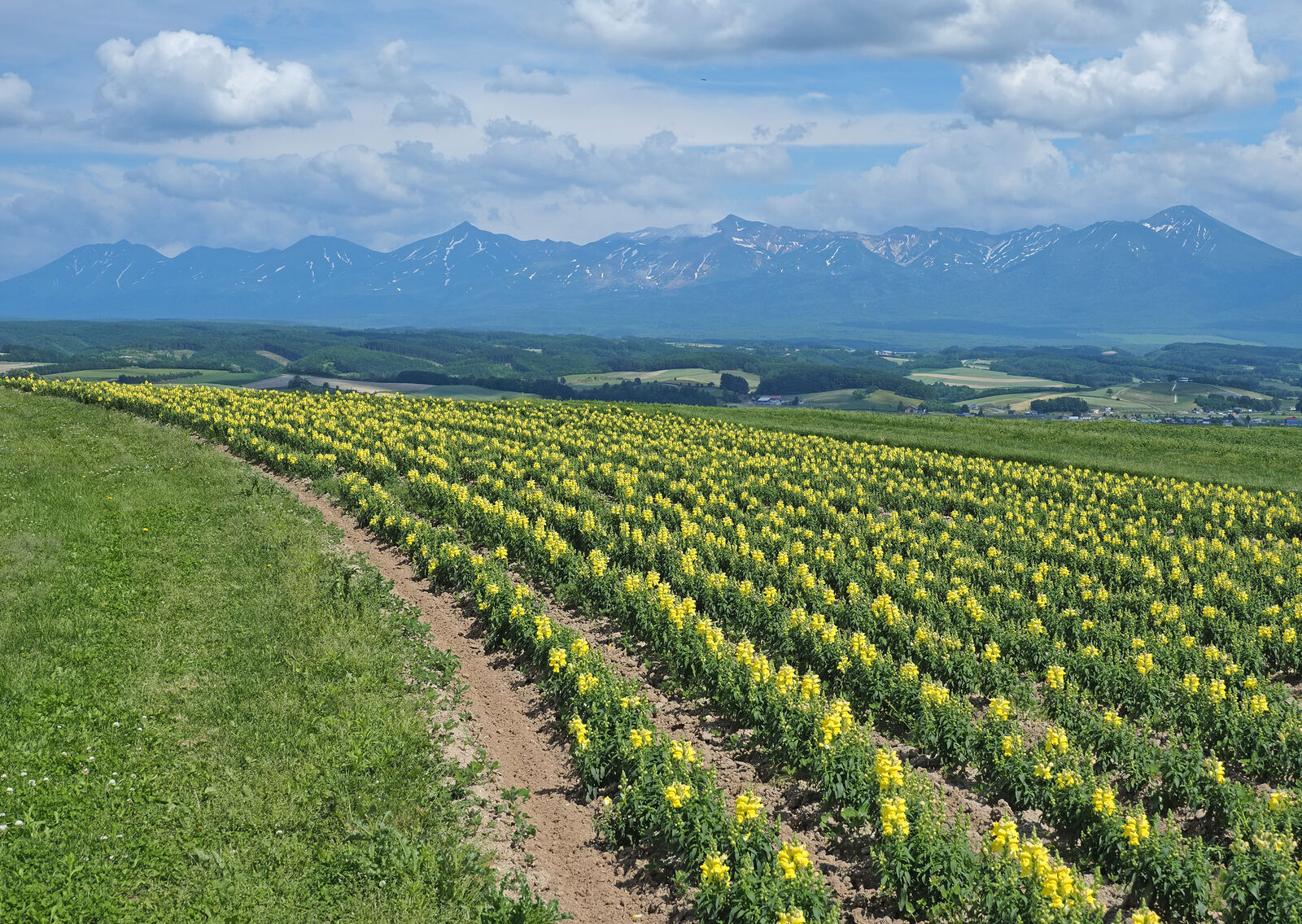 今日は雲が多いですが、陽射しも十分にあり、十勝岳連峰の稜線はクッキリ。