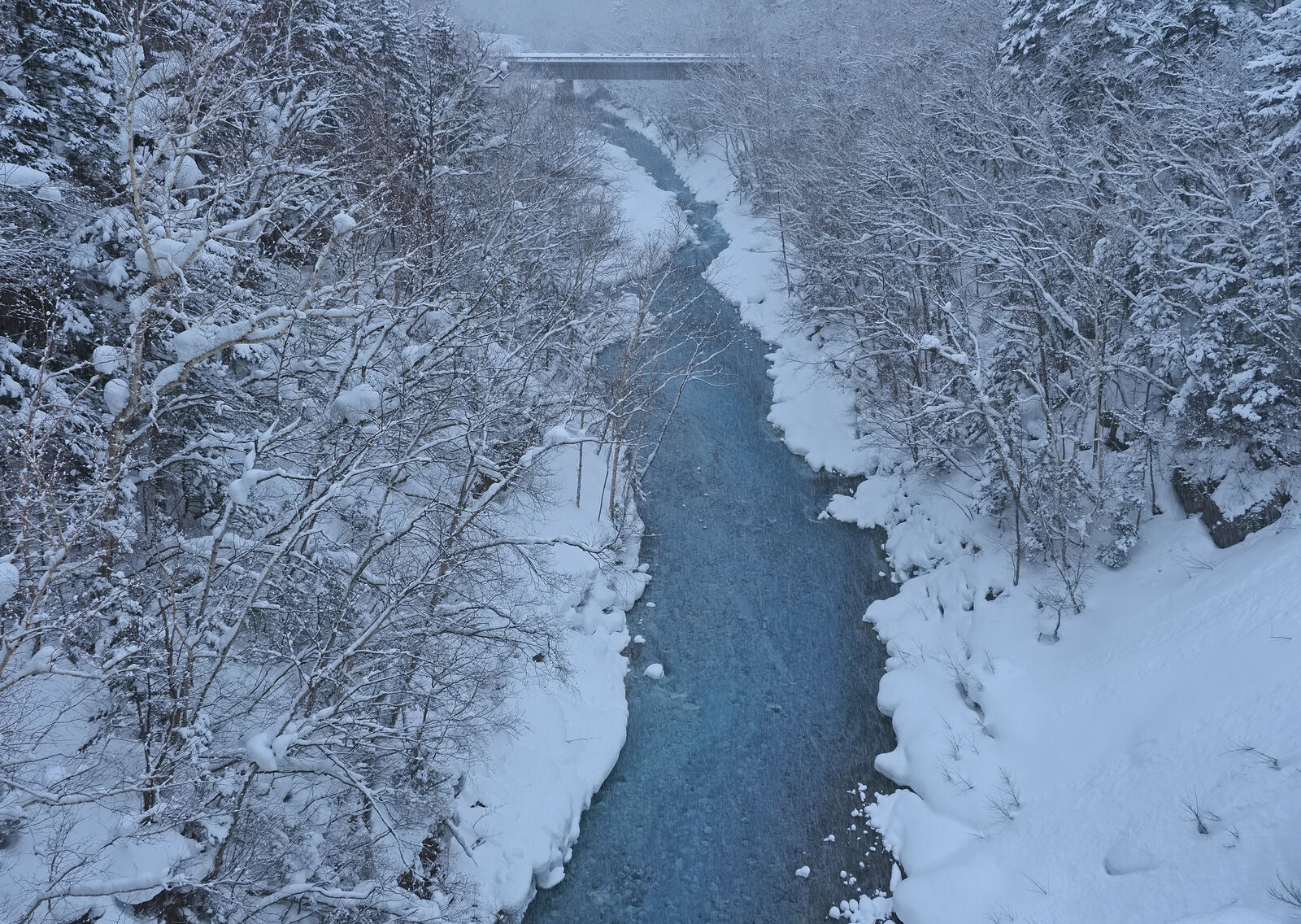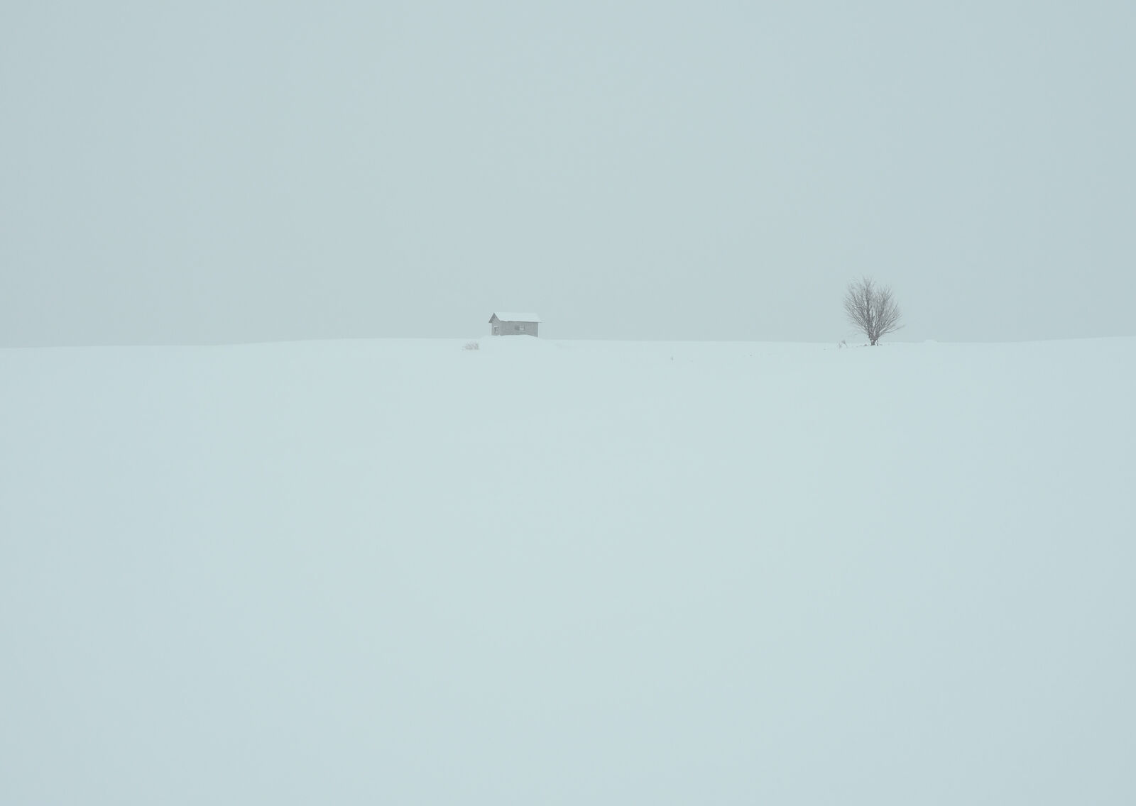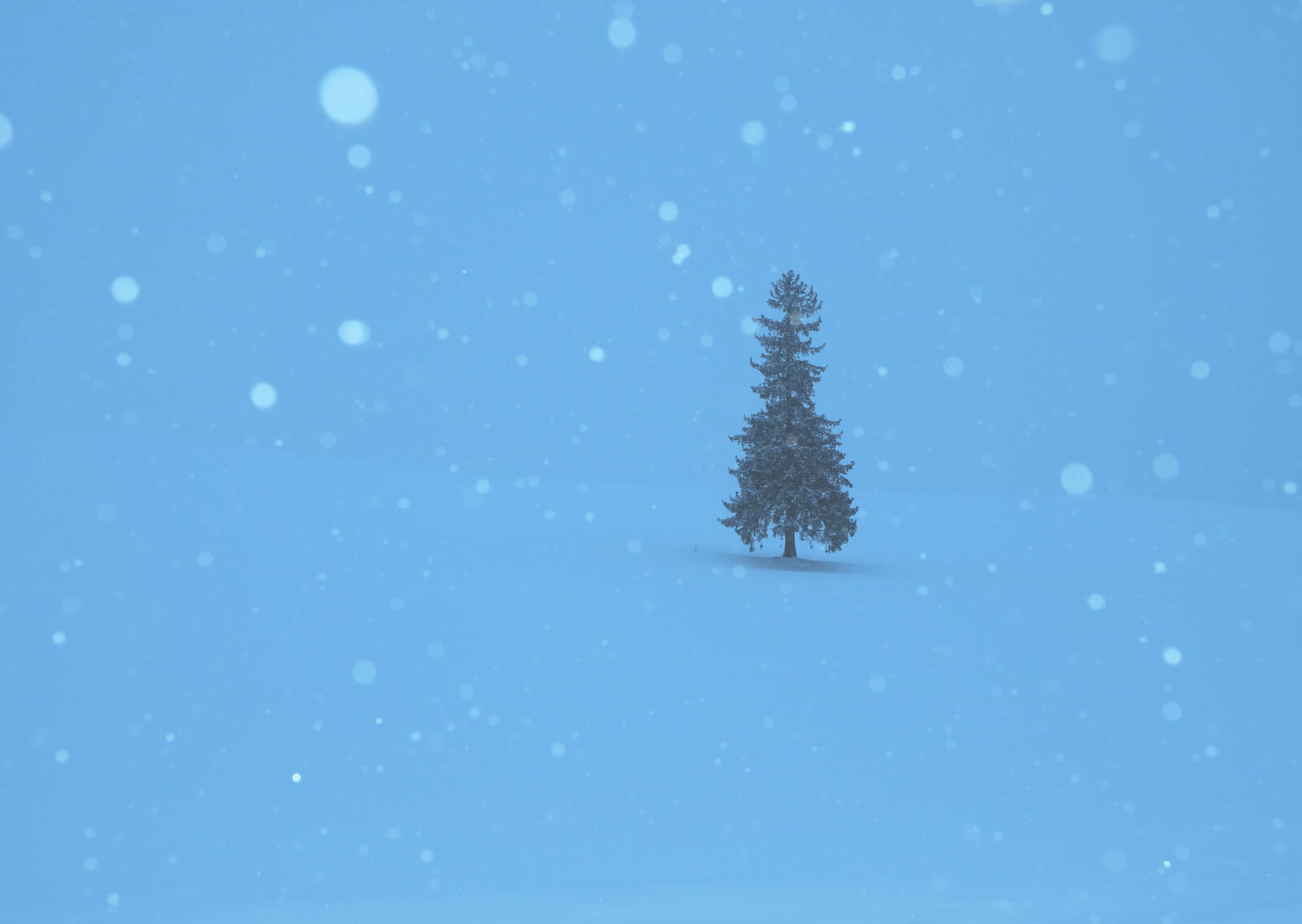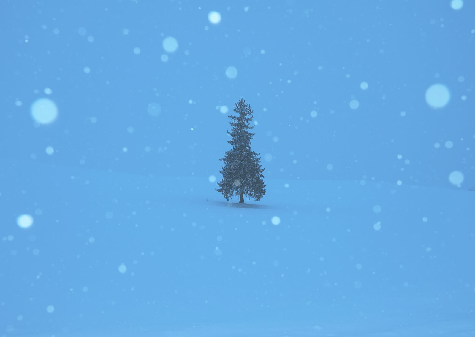 道内各地では暴風雪警報が出ていますが、早朝の美瑛周辺は雪がシンシンと降るものの、風はほぼ無風。