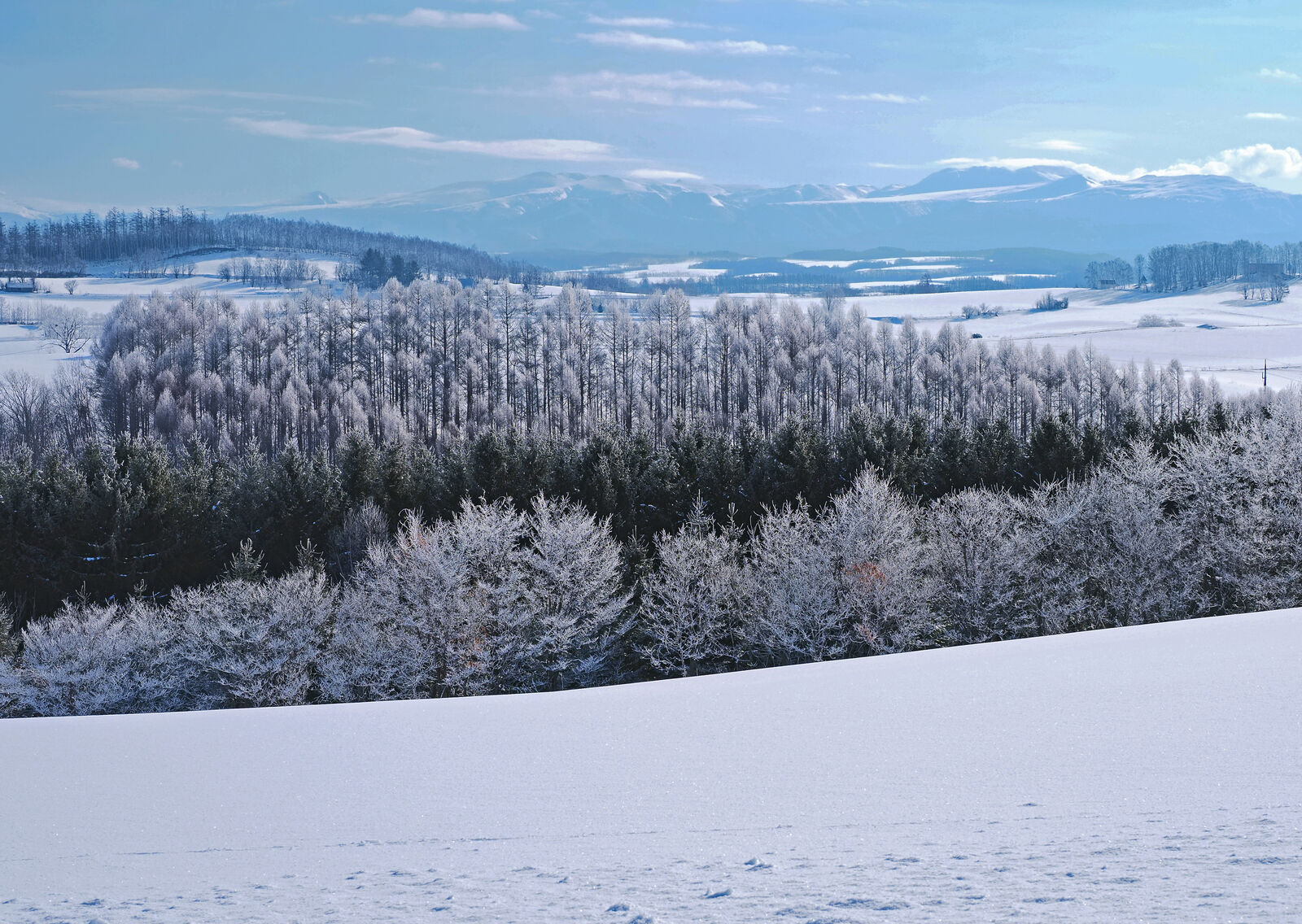 美瑛に戻ってくると、曇っていますが、少し光が入ってくる感じの空。