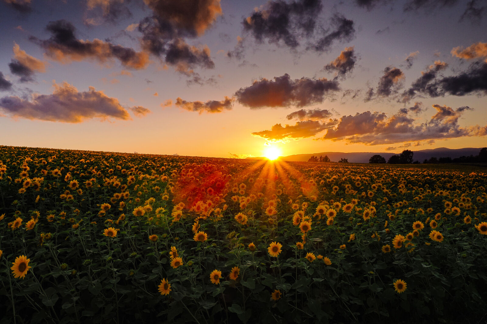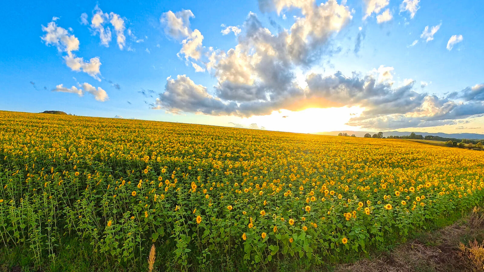 今日の夕活は、夕陽をバックにしたヒマワリ畑の逆光GND撮影。