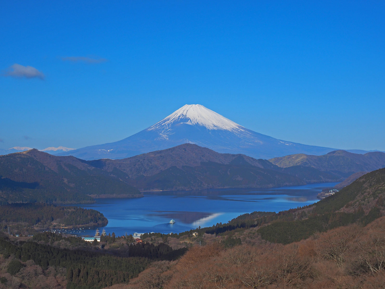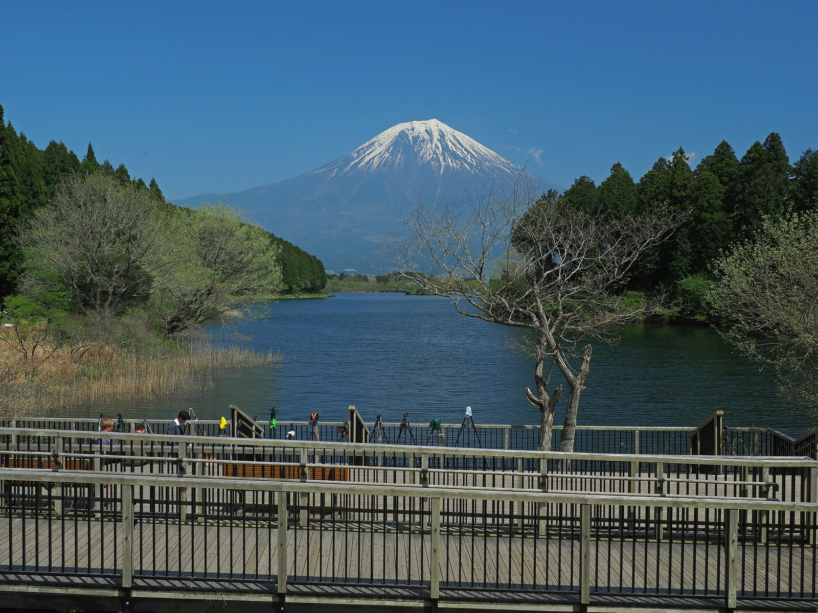 山中湖から望む富士山が男性的と言われる所以は、左右のでっぱりが男性が腕を組んでいるように見えるからだそうです。