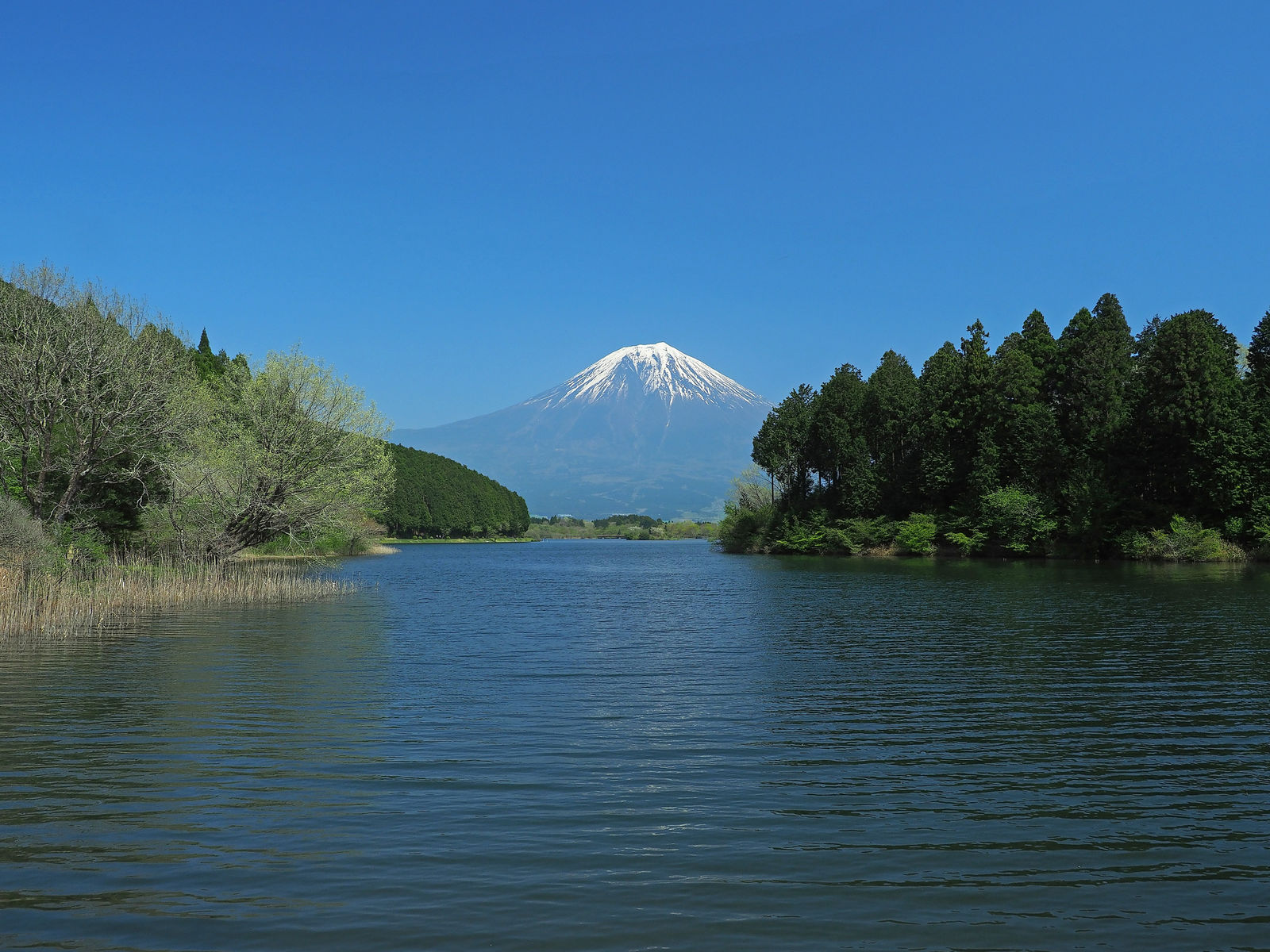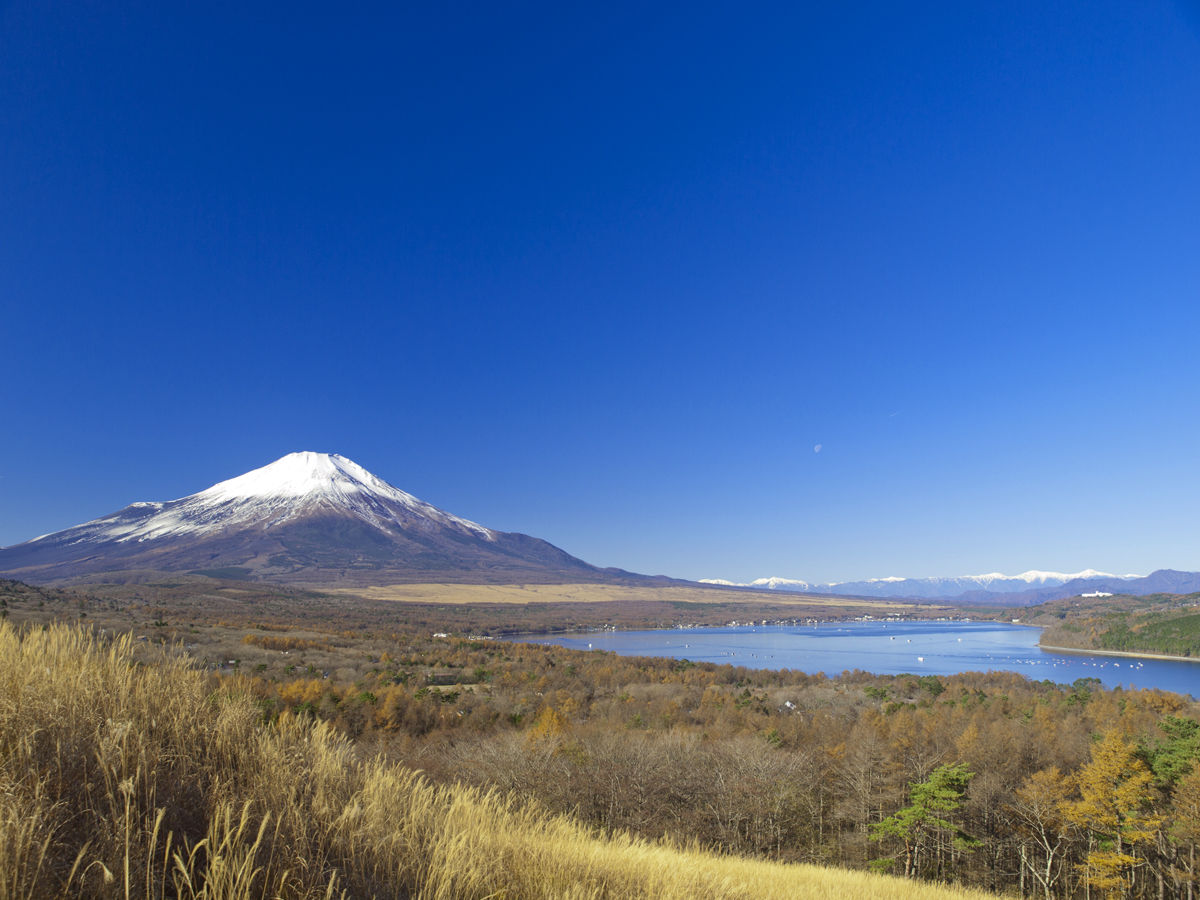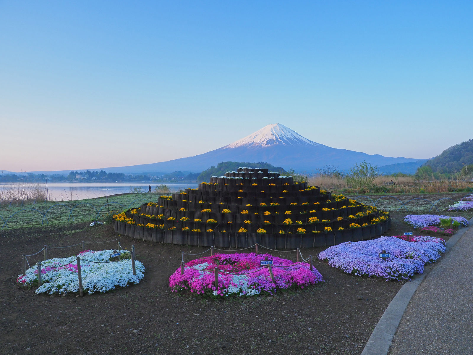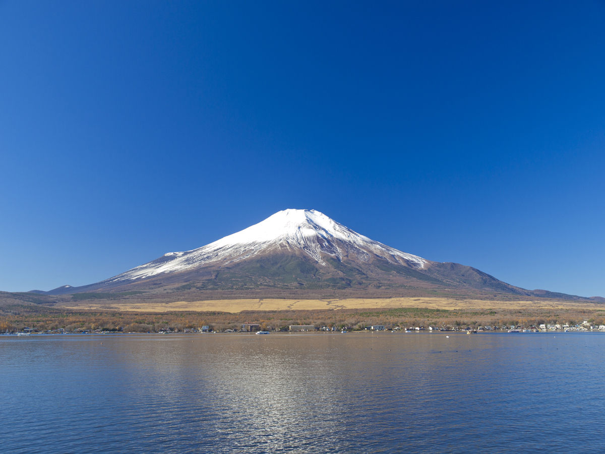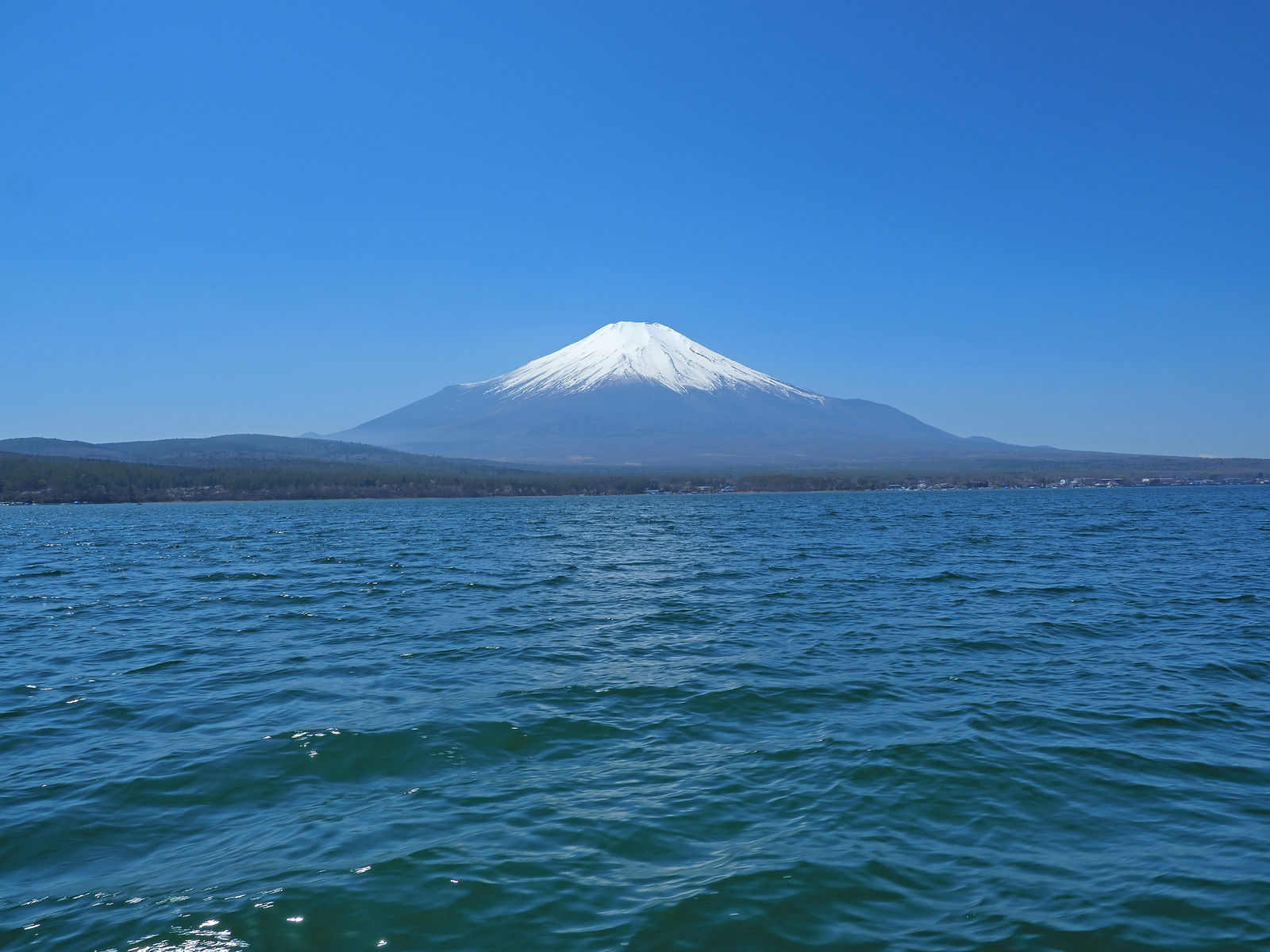 一方、河口湖から望む富士山は、裾野がなだらかに広がっていて、女性的と言われています。