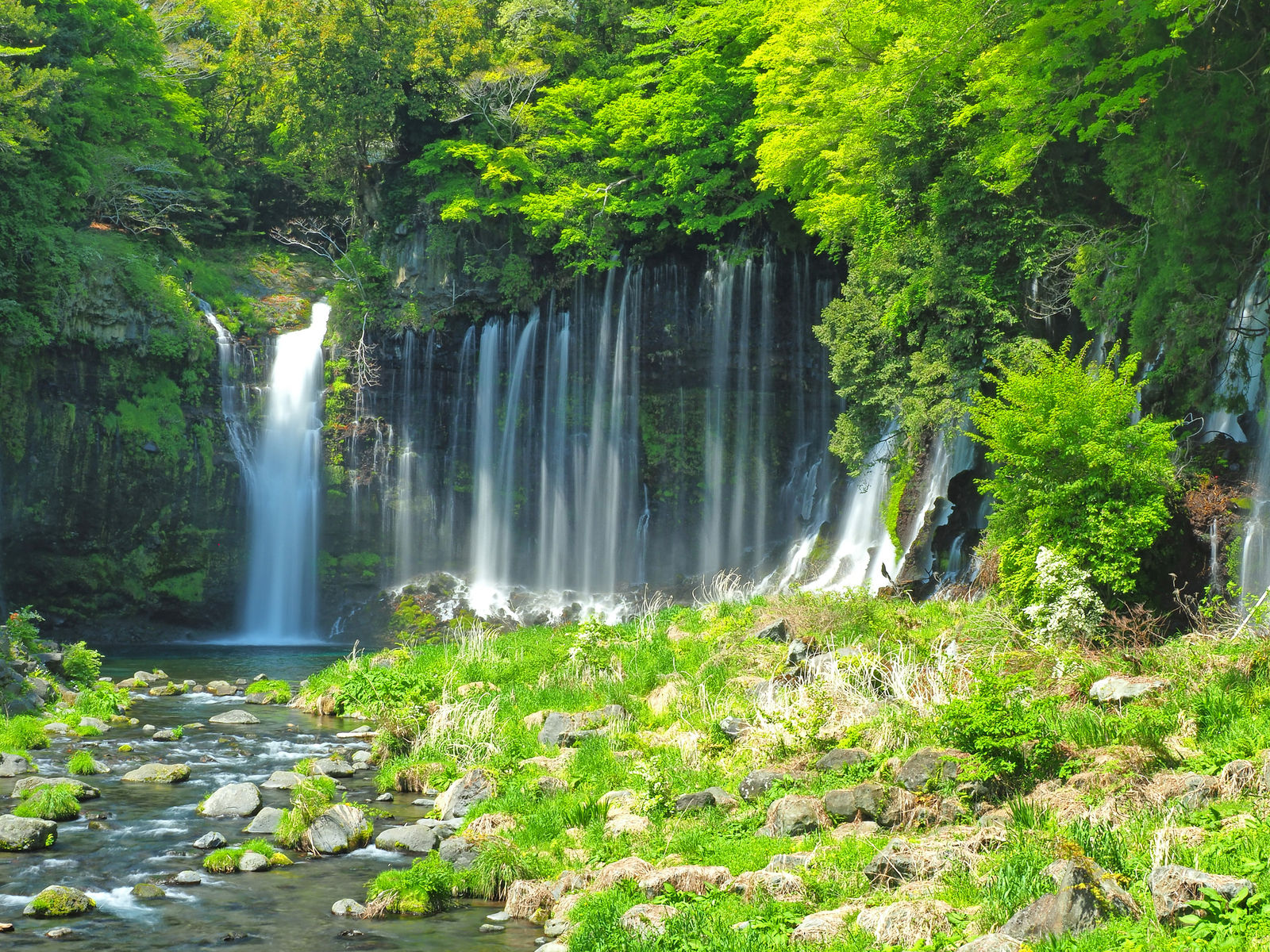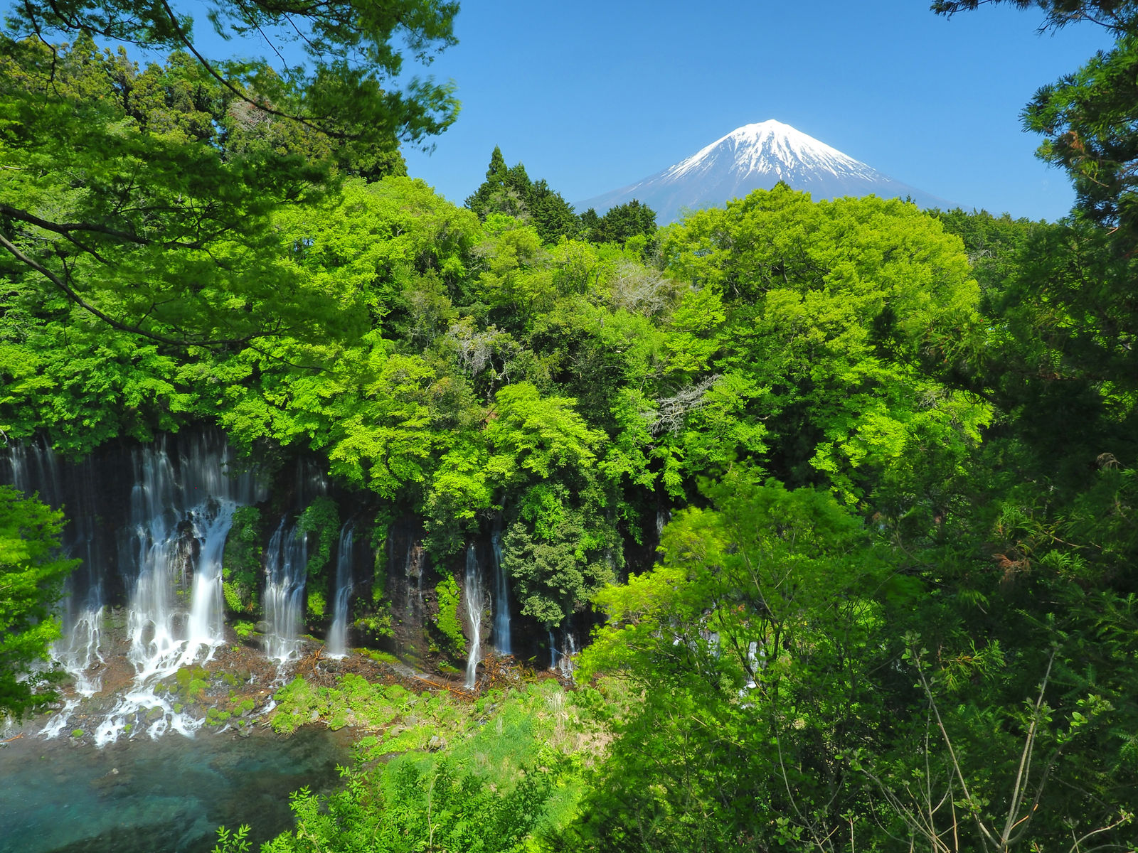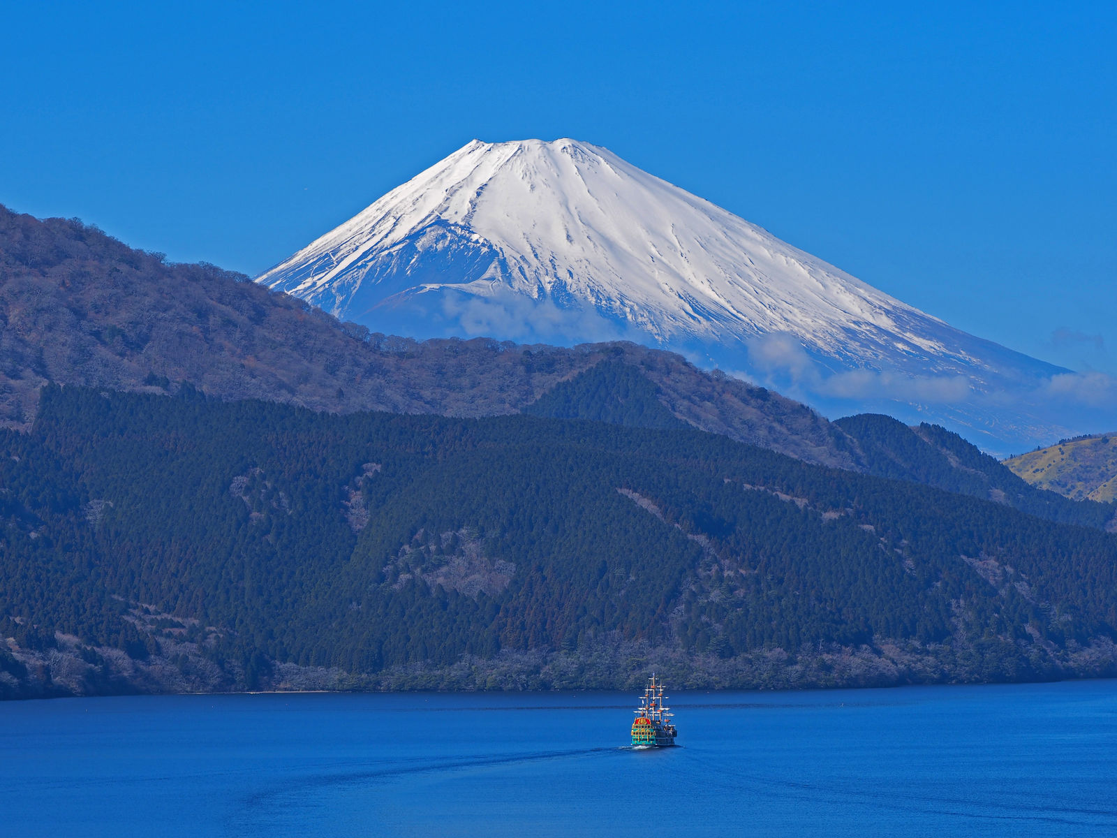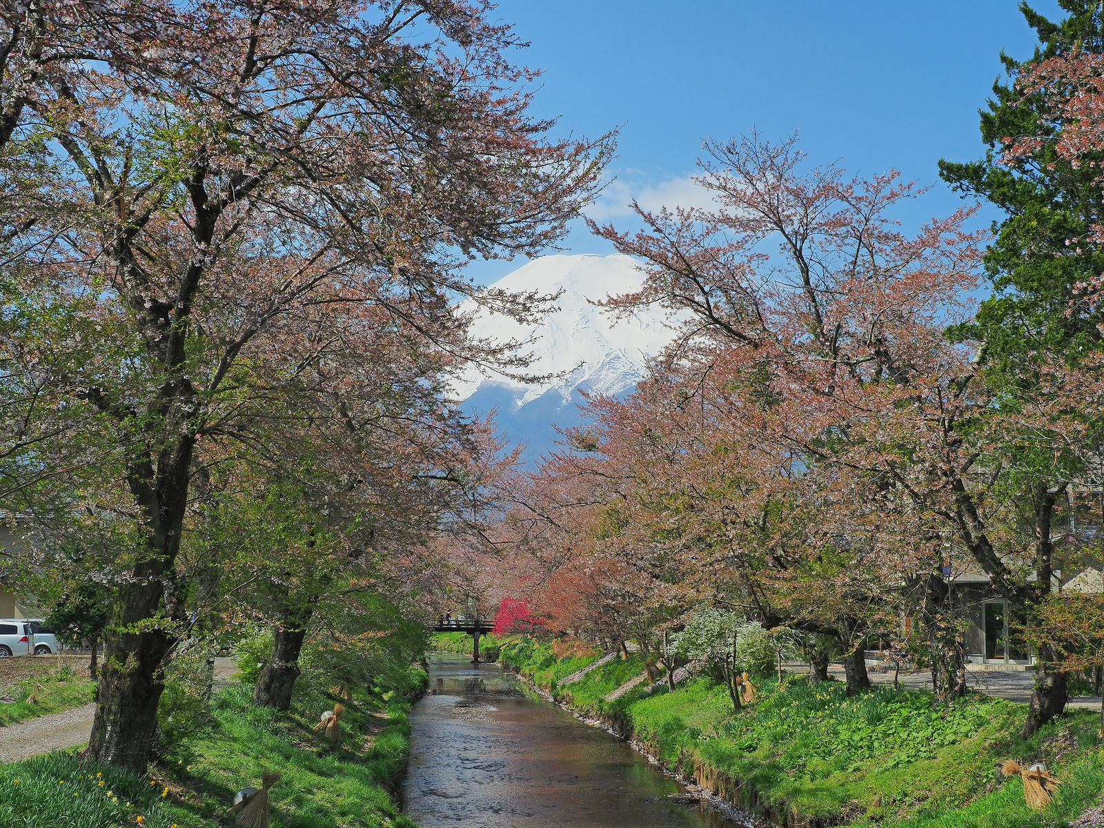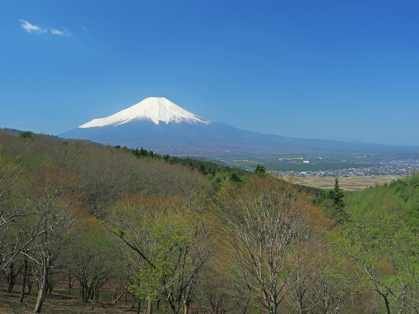 一方、河口湖から望む富士山は、裾野がなだらかに広がっていて、女性的と言われています。