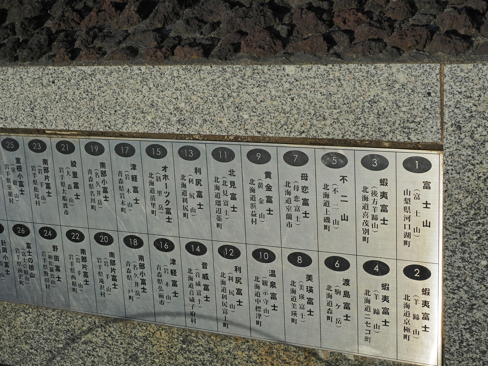 大石公園には「富士山の集いモニュメント」があり、全国252箇所の「富士」と名の付く石を集めて「石の富士山」を作り上げています。