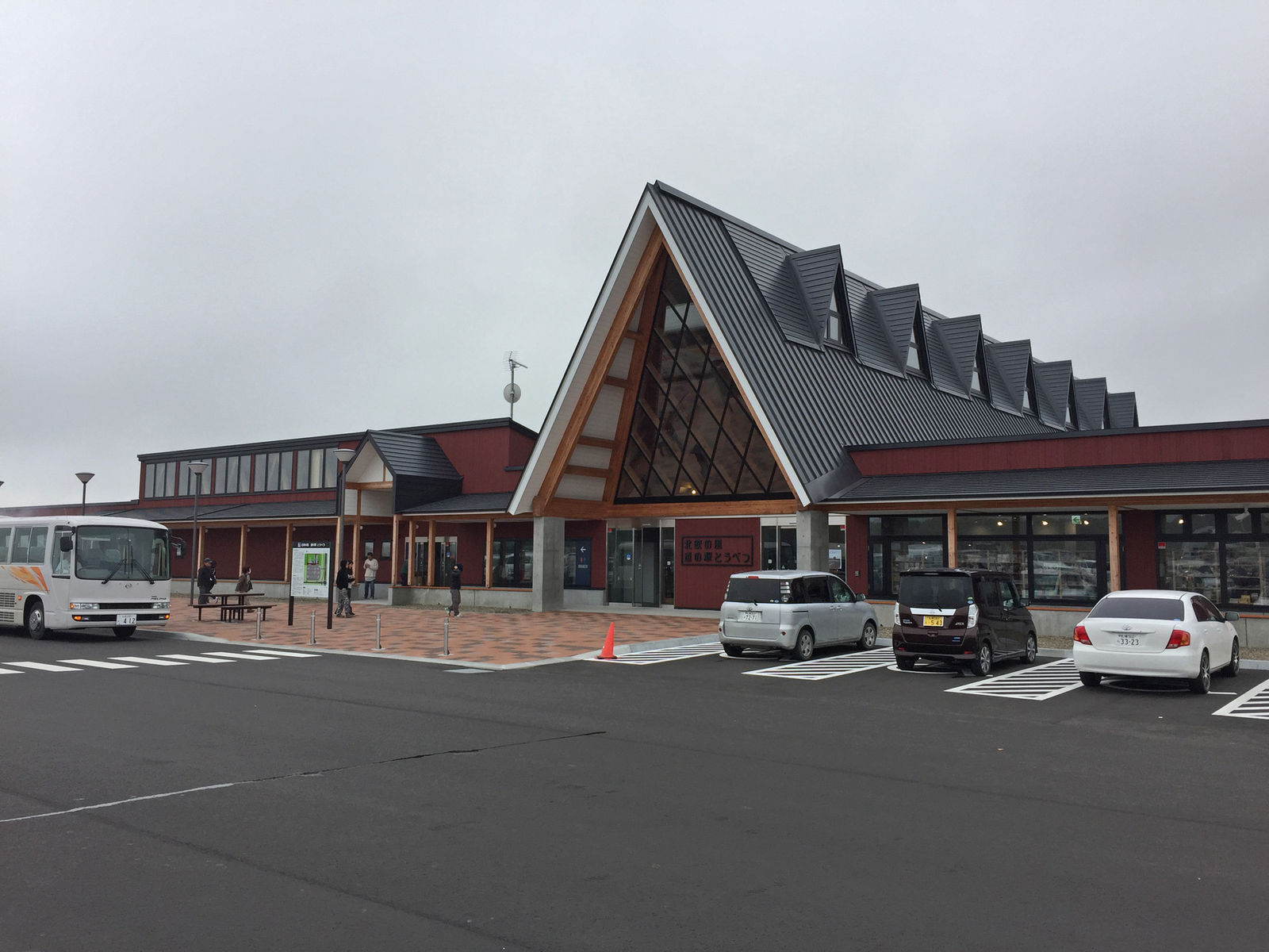 ゆにガーデンに向かう途中、かなりの大雨が降ってきたので、安平町の道の駅に避難。