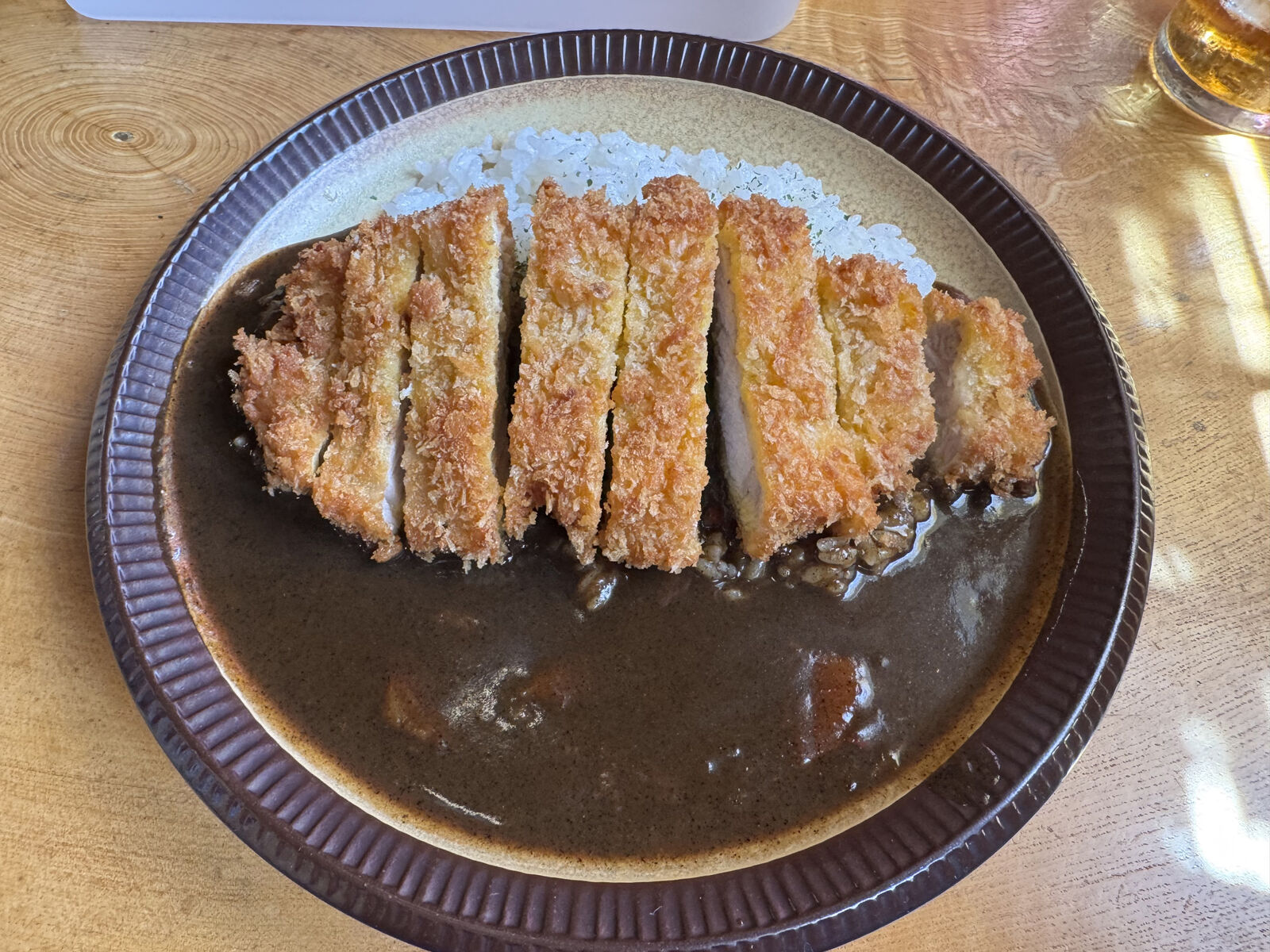カツも香ばしく揚がっており、カレーとの相性も抜群でしたが、ちょっと肉に筋が残っていて、スプーンでサクッと切れない箇所が数ヶ所あったのがチョット残念でしたが、美味しいカツカレーでした。