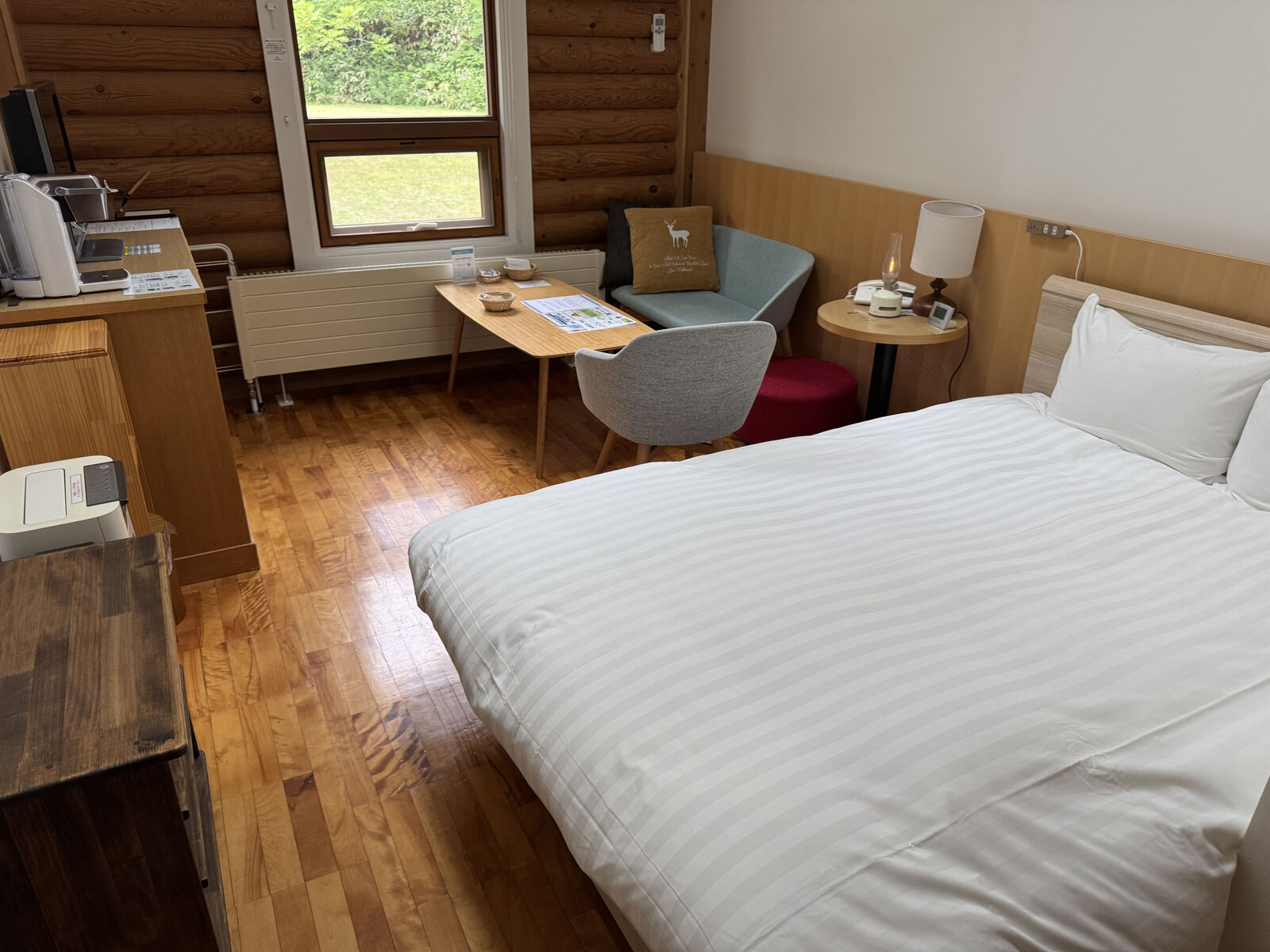 今宵の宿泊地は、岩見沢市の森の中にある、ログ ホテル メープルロッジさん。