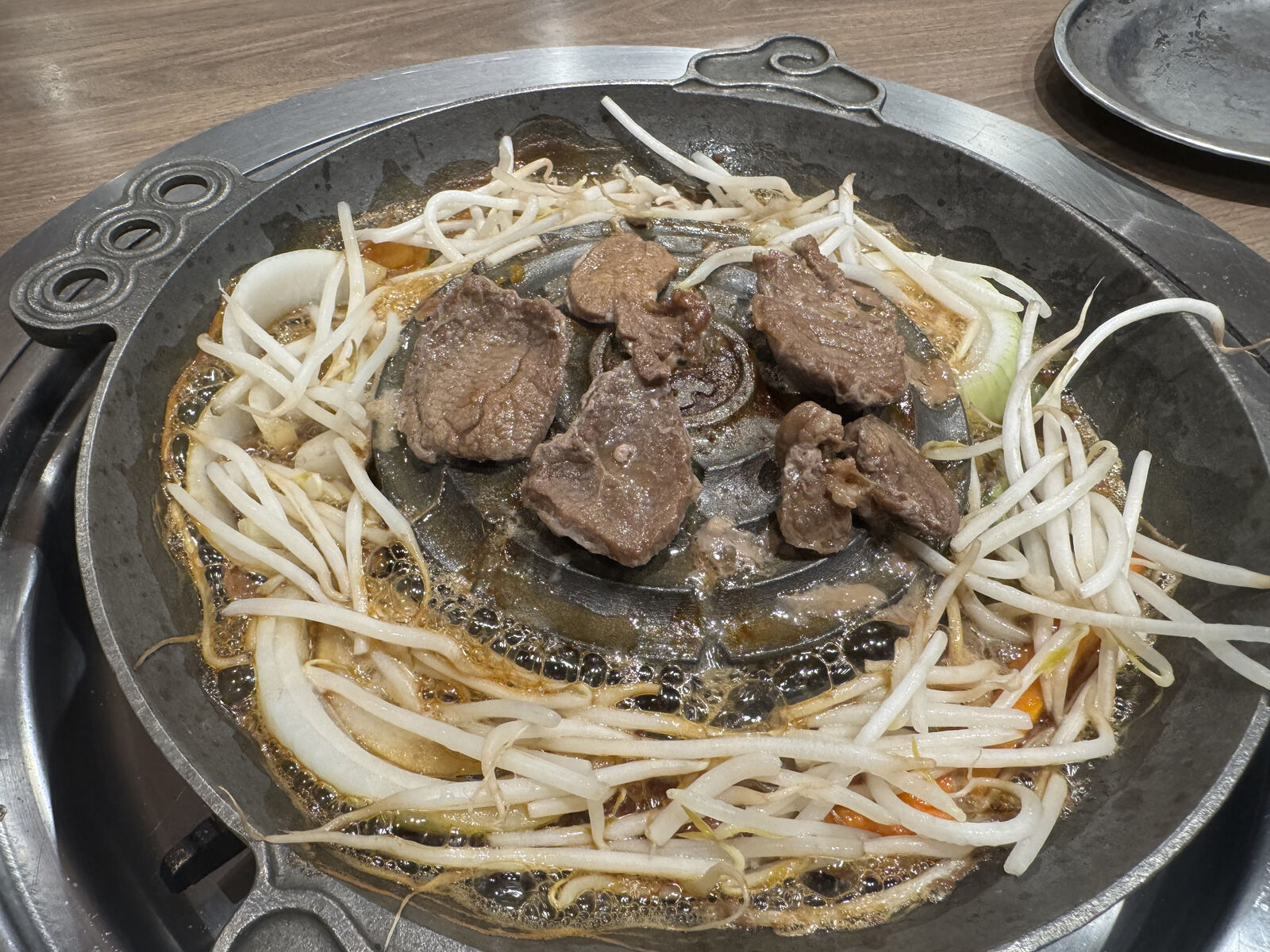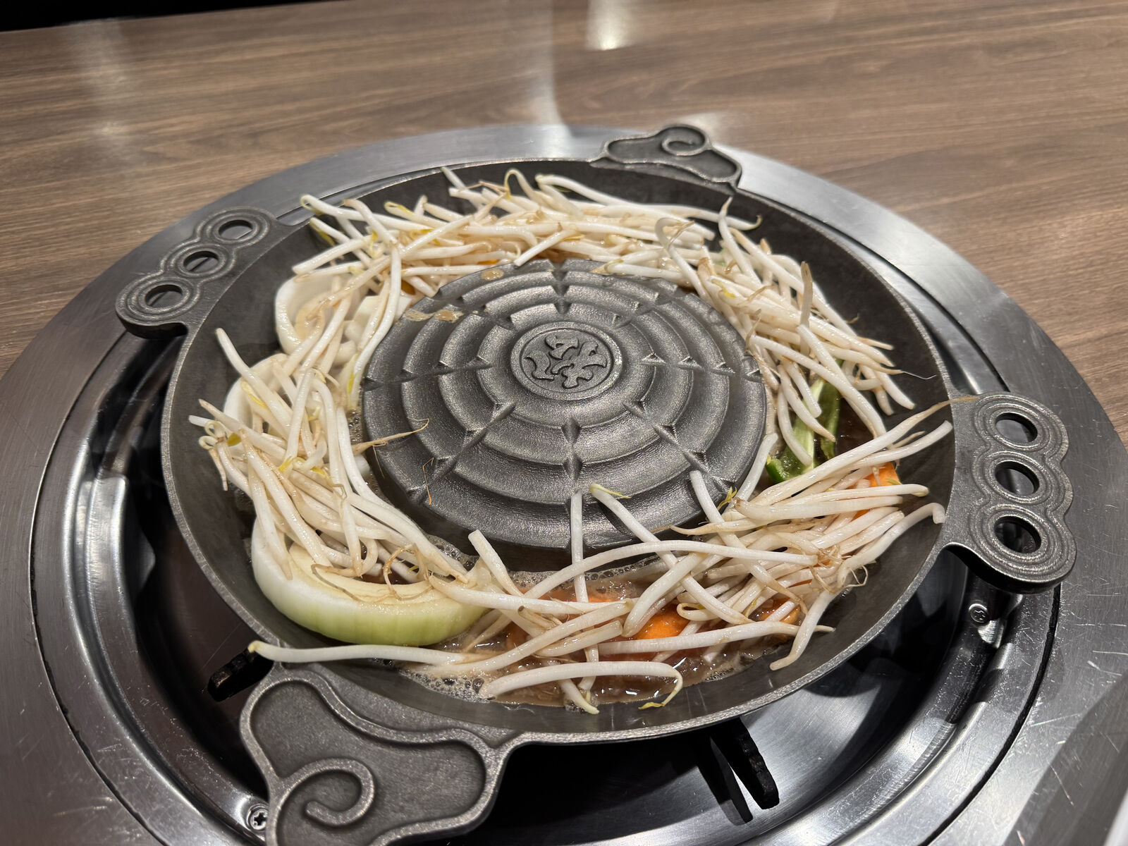 肉はタレ付きなので、つけダレはなく、まわりの野菜を秘伝の生ダレをかけて煮ていきます。
