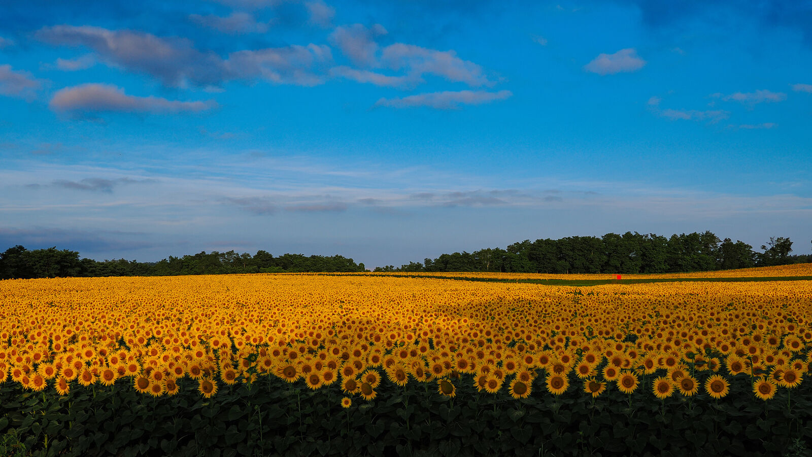 天気予報では、6時頃から晴れマークになっていたので、5時頃にひまわりの里に到着するように出発。