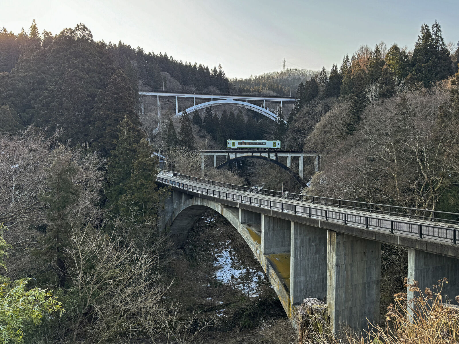 【真ん中の橋】長男は国道の橋ではなくJR只見線の大谷川橋梁(全長80.7m・RCアーチ橋)