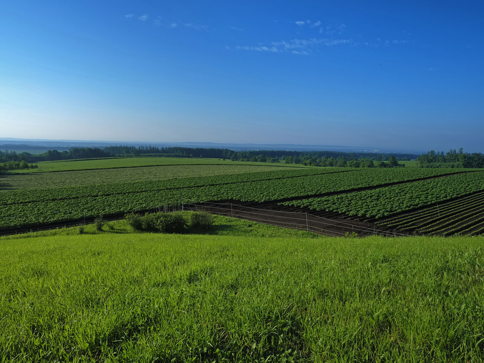 最終日の朝、温泉で朝風呂に浸かった後、外を見ると、帯広の街の向こうに日高山脈が綺麗に見えていました。