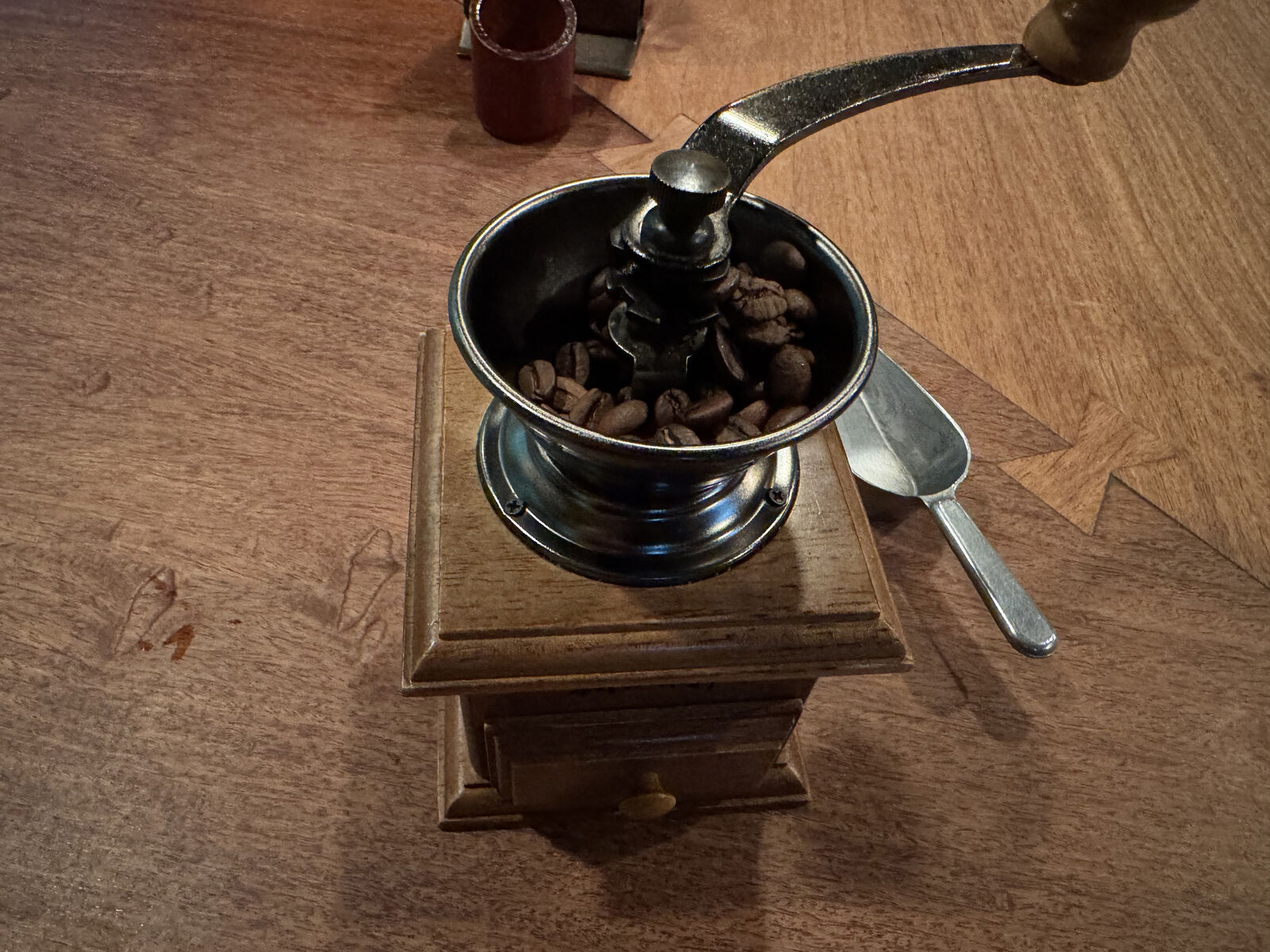 ミルとコーヒー豆が到着しましたので、さっそくミルで挽いていきます。