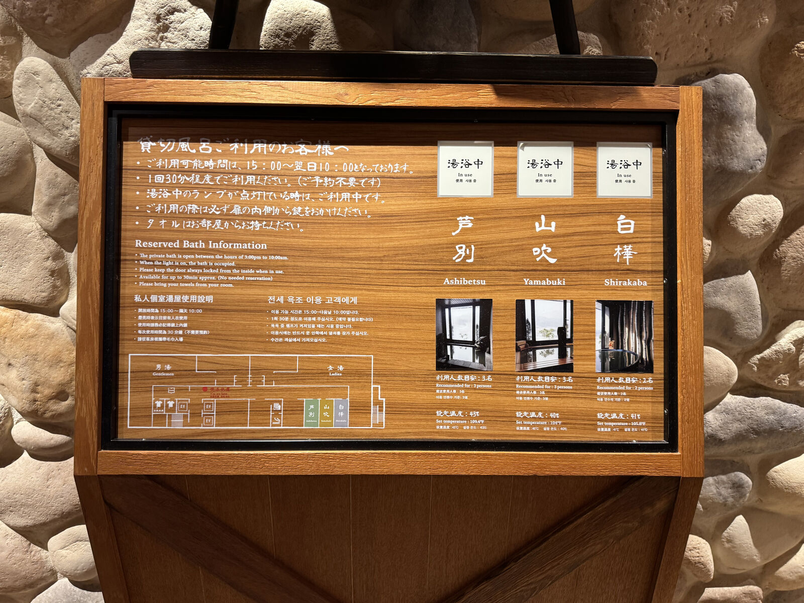 まだ早朝なので9階の貸切風呂はどこも空いていますね。
