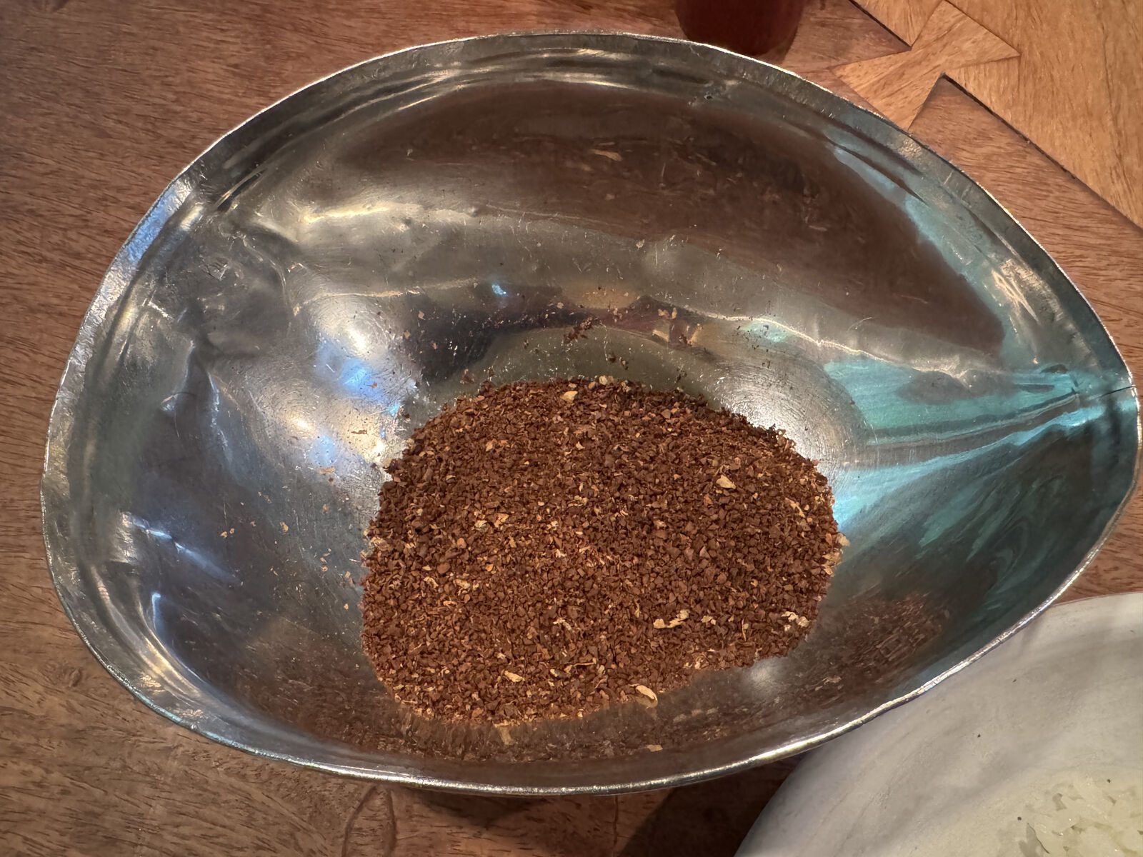 挽き終わった後、店員さんにミルを渡すと、ボウルに挽きたてのコーヒーを入れてくださるので、香りを嗅がせてもらえます。