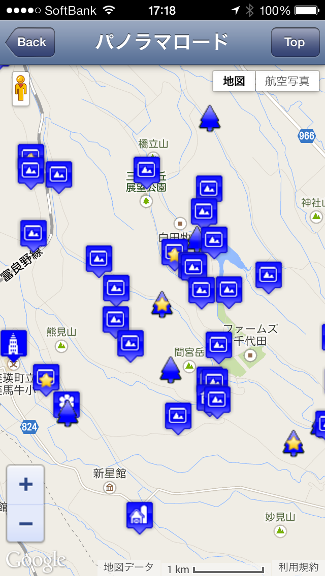 すると、地図が航空写真として表示されるとともに、拡大表示され、可照時間円の半径も狭くなりますので、近めの木を日出や日没時の太陽と重ね合わせて撮影したい時に、有効活用できます。
