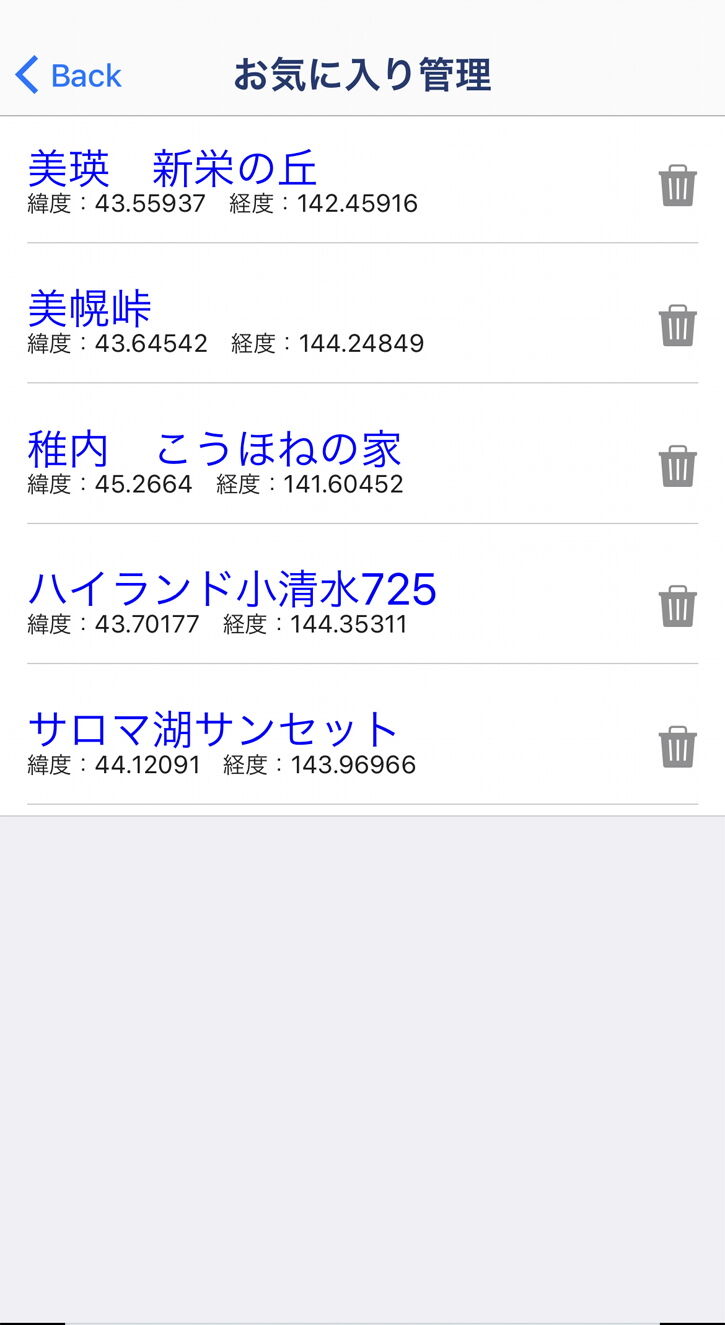 不要となったお気に入り場所は、ごみ箱アイコンをクリックすると削除されます。
