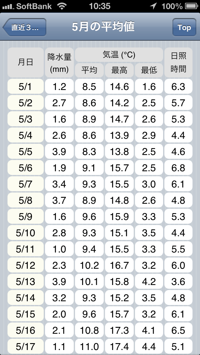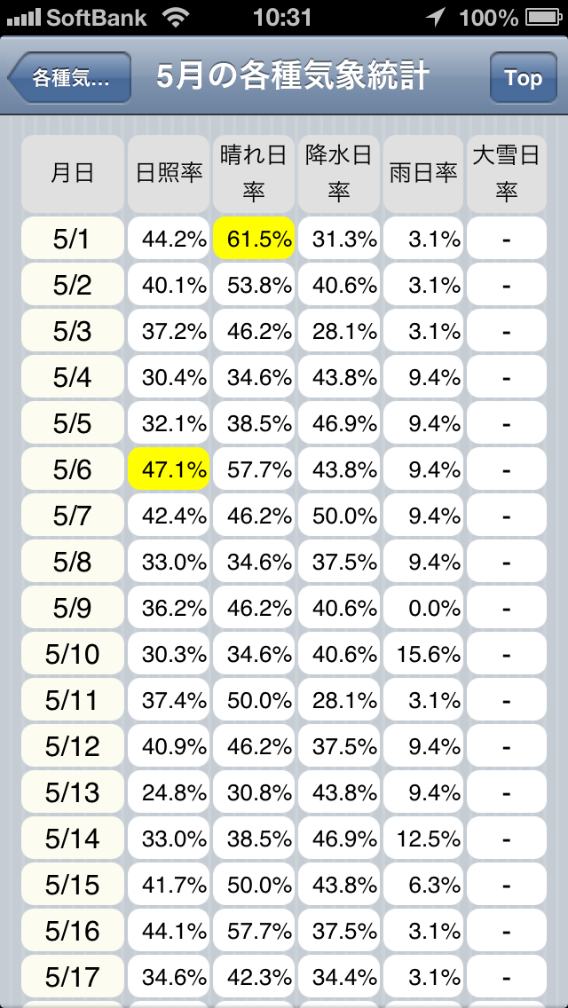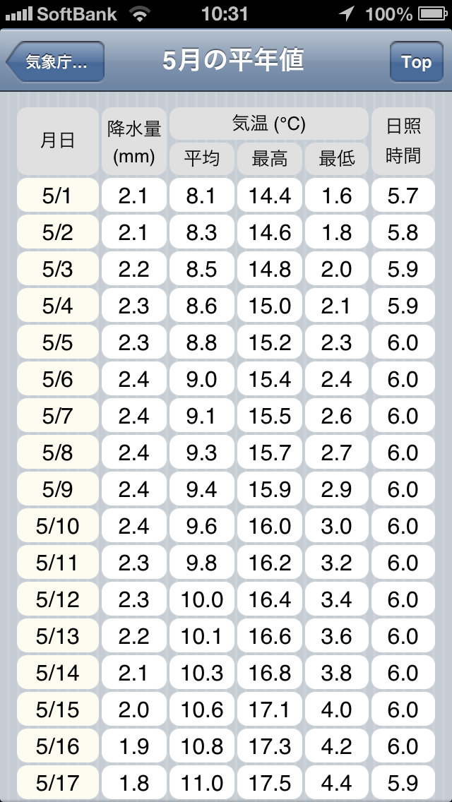 この画面では、日出・日没時刻のみならず、以上のような様々な情報が表示されます。