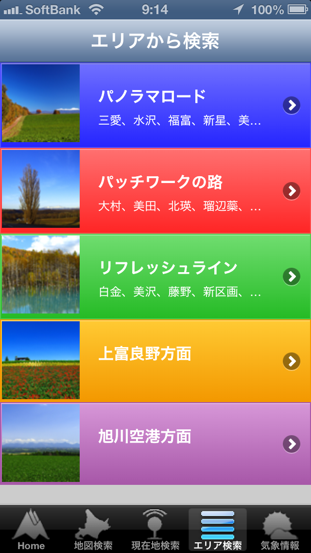 まず、場所の設定方法としては、「地図から検索」「現在地」「お気に入りから選択」の3つの方法があります。